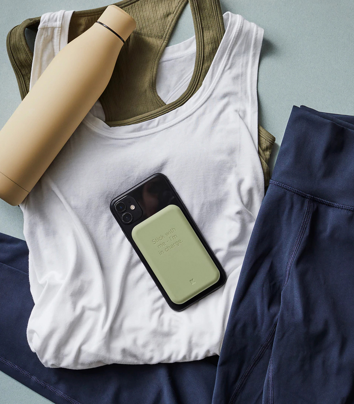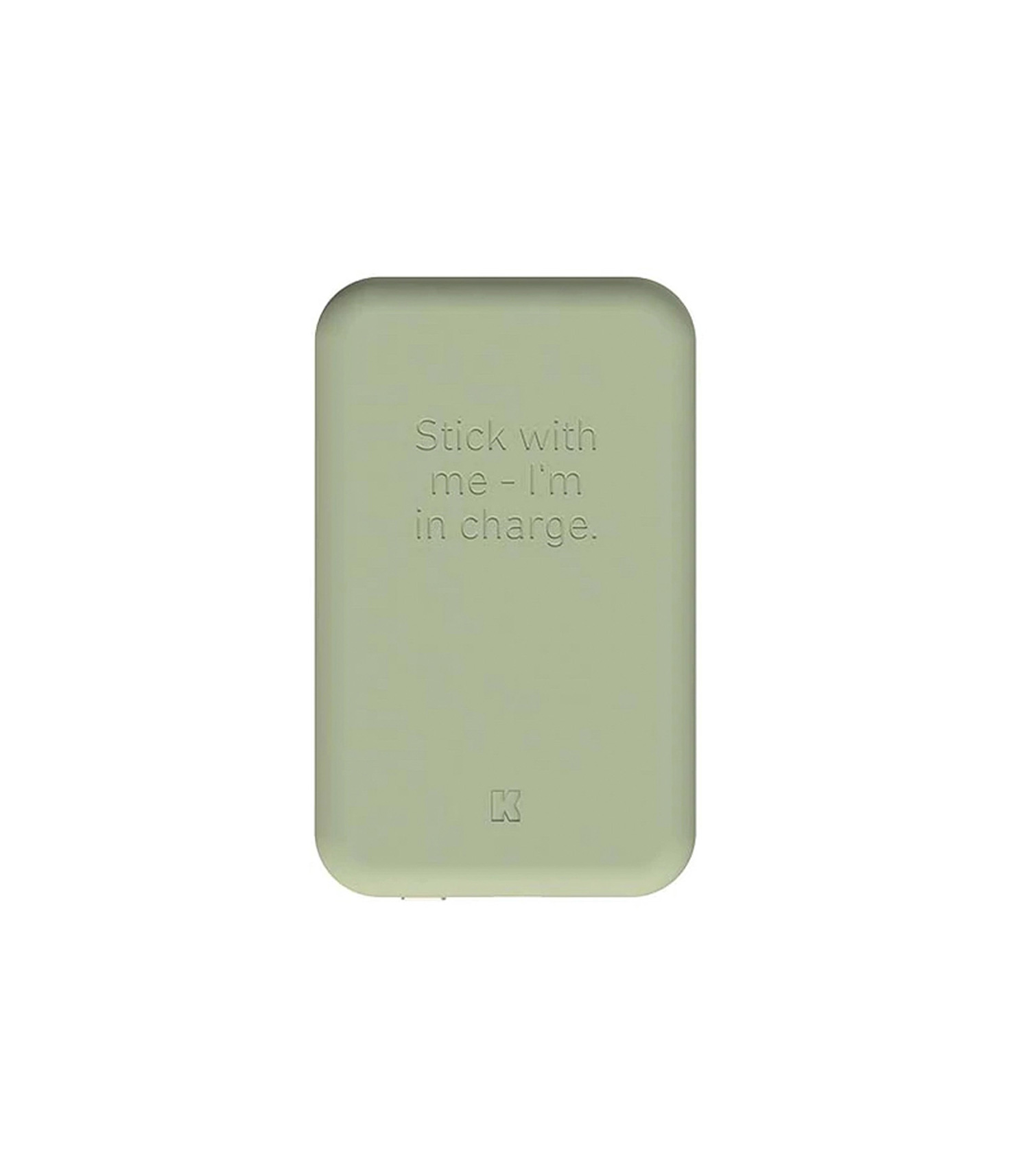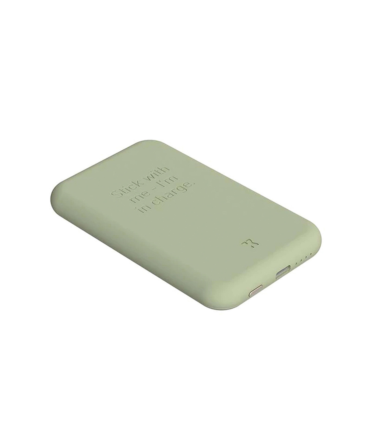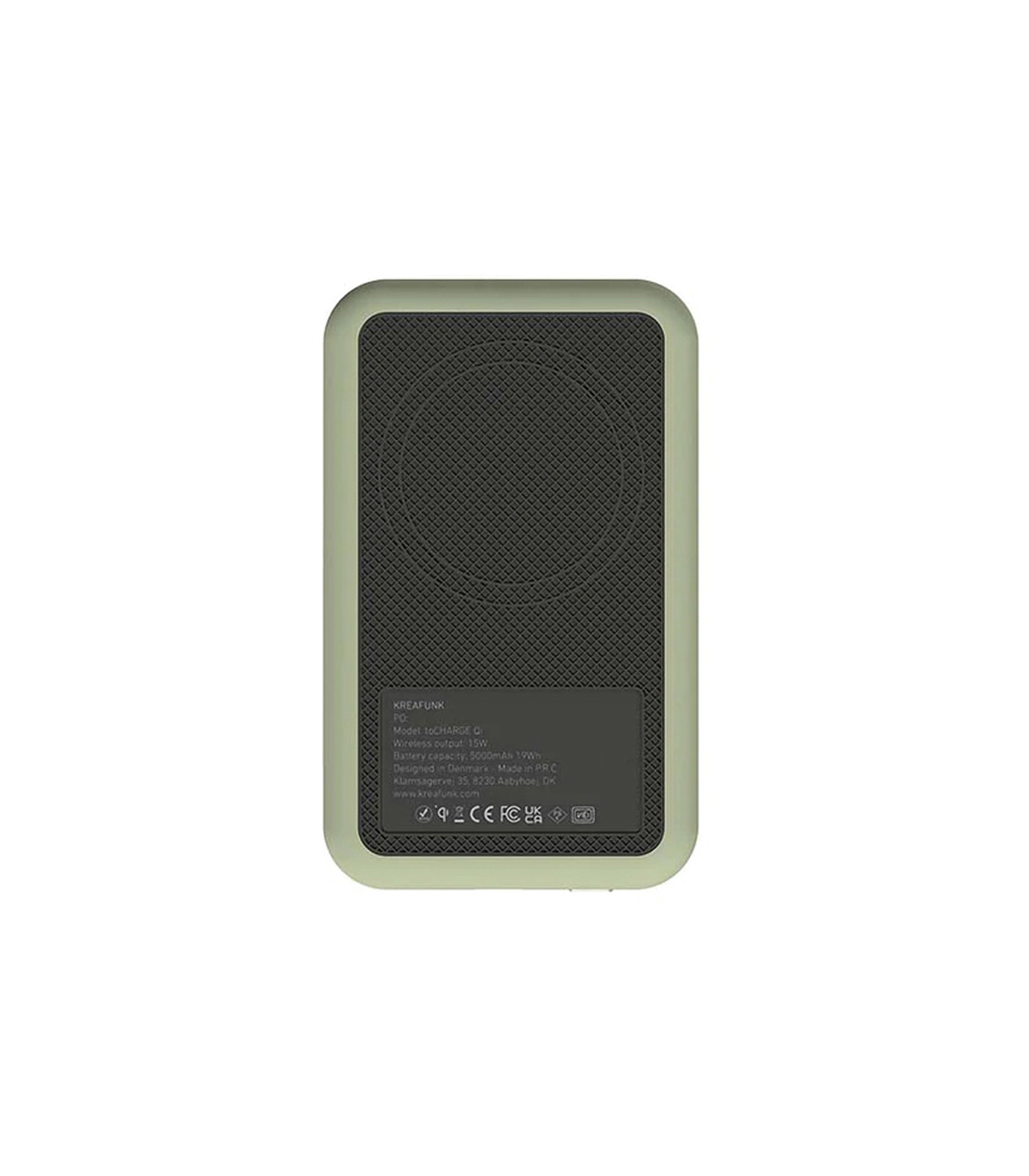 Batterie portable toCHARGE Qi de la marque Kreafunk, coloris Dusty Olive. Idéale à emporter partout, elle se glisse facilement dans un sac ou une poche.