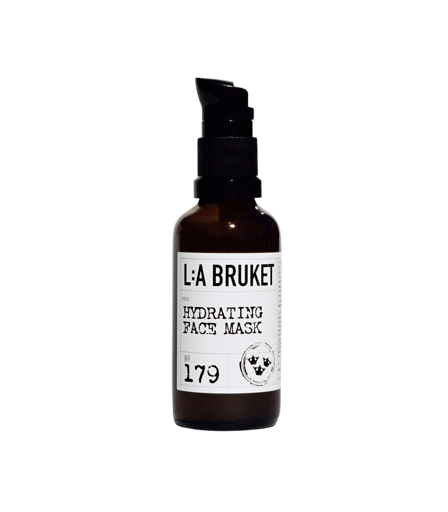 Masque hydratant naturel et biologique pour le visage n°179 L:a Bruket, conçu sous forme de gel délivré dans un petit flacon à pompe de 50 ml, qui hydrate en profondeur et apaise la peau. Il contient du jus d'aloe vera relaxant, et de l'extrait de concombre rafraîchissant. Ce masque permet de lutter contre la déshydratation et améliore l'élasticité de la peau.