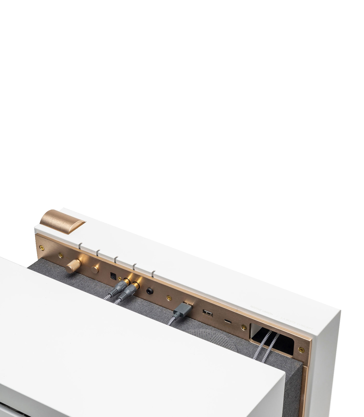 Résultat d'une collaboration entre Native Union et La Boîte Concept, les expertises de ces deux marques ont donné un design contemporain et une technologie avancée avec une acoustique inégalée. Avec son bouton de contrôle unique doré, l'enceinte PR/01 vous permet d'écouter votre musique quelqu'en soit la source.