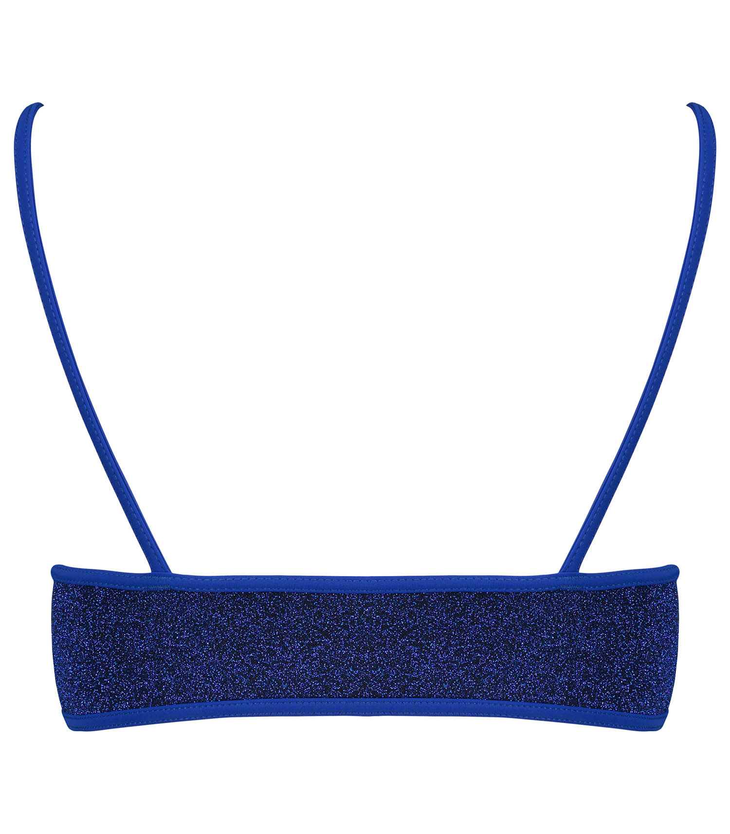 Haut de maillot de bain Georges Mousses Amovibles Deep Blue de la marque La Nouvelle, conçue dans un joli tissus lurex bleu nuit profond qui donne un côté sirène à la silhouette. Sa forme en V et ses fronces au centre de la poitrine permettent de la mettre en valeur. Mousses internes amovibles.