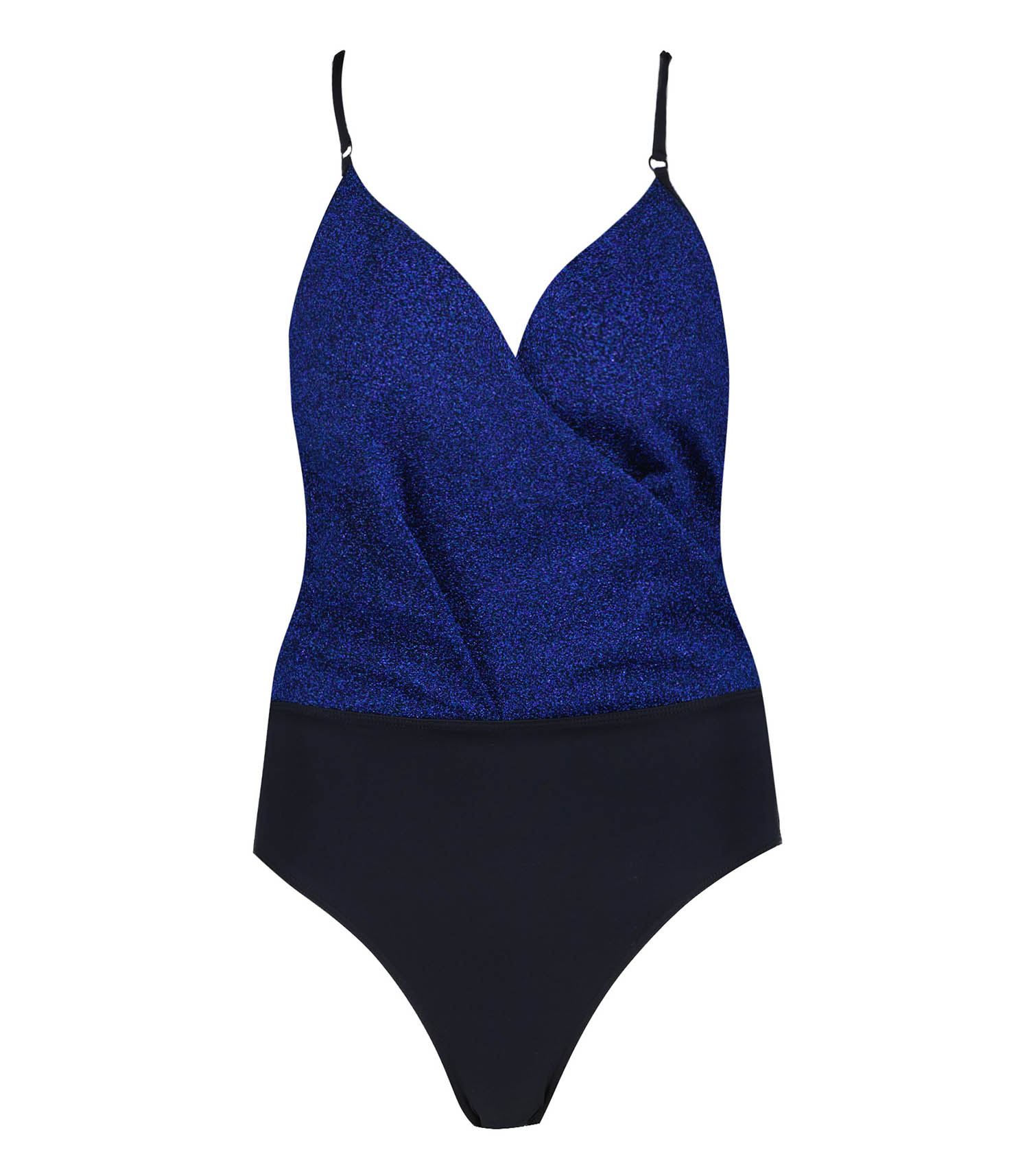 Maillot de bain une pièce Hélio Deep Blue signé La Nouvelle, une pièce avec un buste en cache-coeur conçu pour mettre en valeur la poitrine. Sa matière en lurex bleu profond donne un effet sirène et glamour.