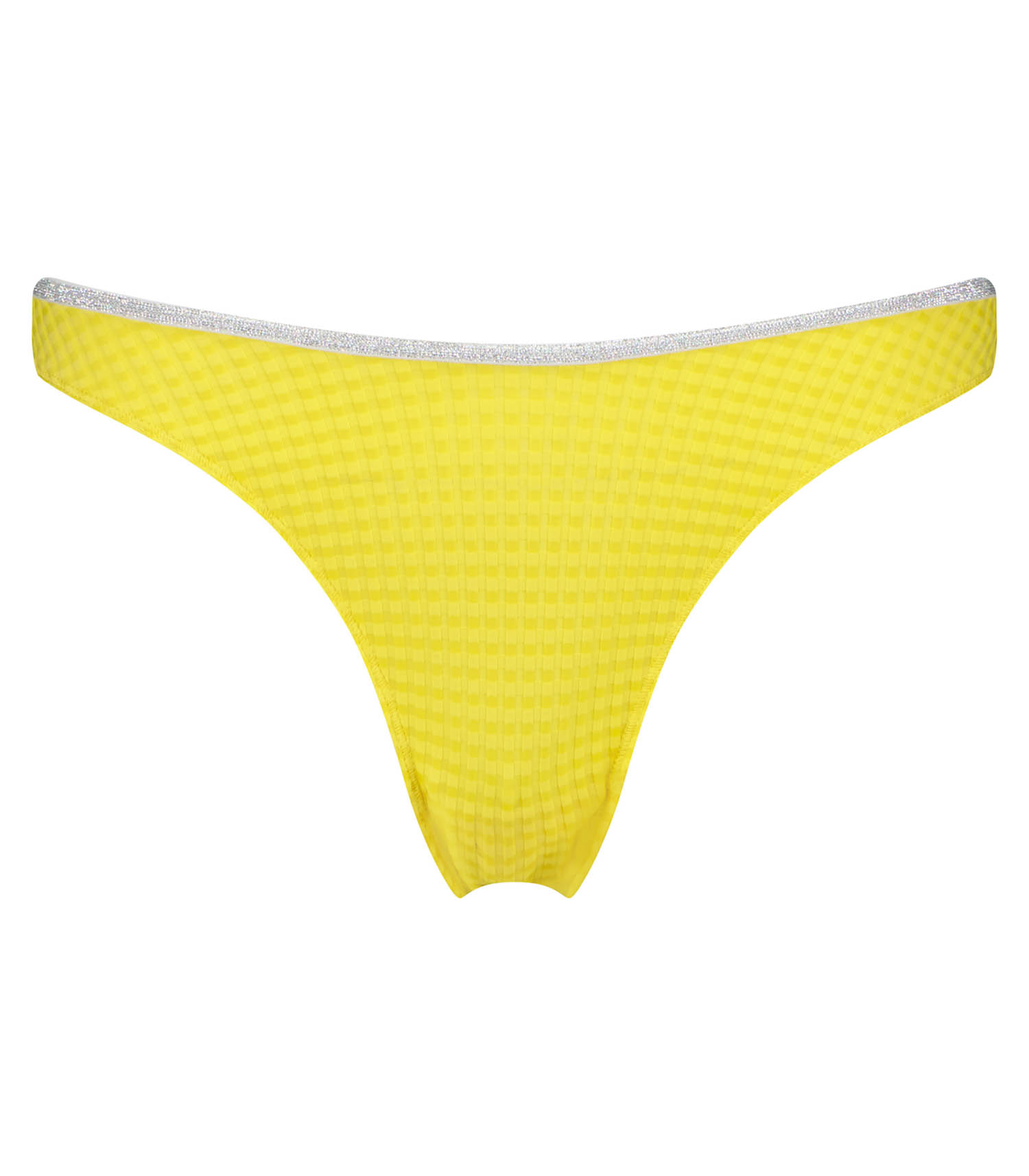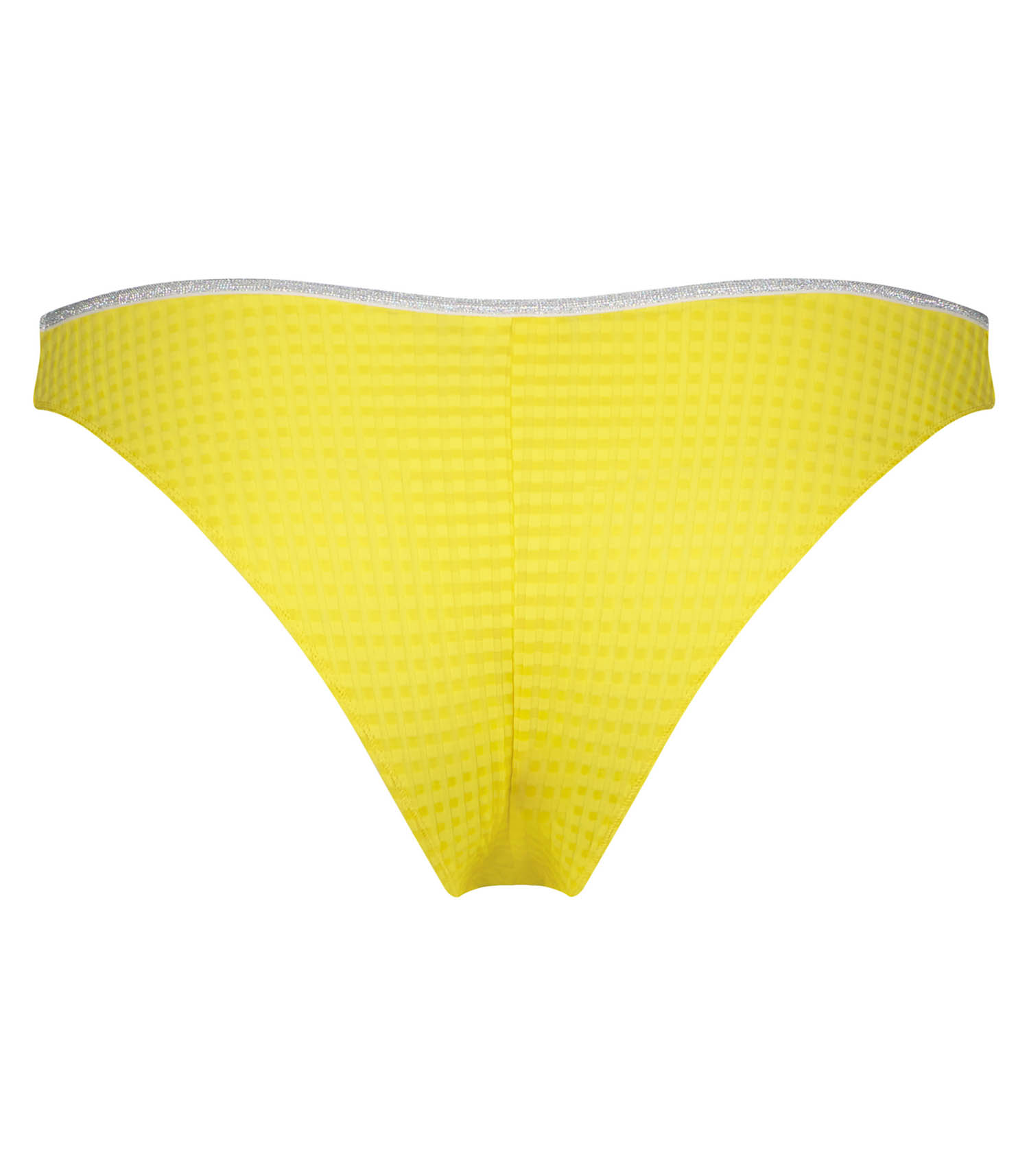 Tanga Freddie Yellow Vichy de la marque La Nouvelle, un joli bas de lingerie printannier avec sa teinte jaune délicate et son imprimé vichy ludique, renforcé par un élastique blanc shiny à la taille. Une lingerie qui réveillra votre vestiaire et sublimera votre corps. Forme échancrée sur les fesses.