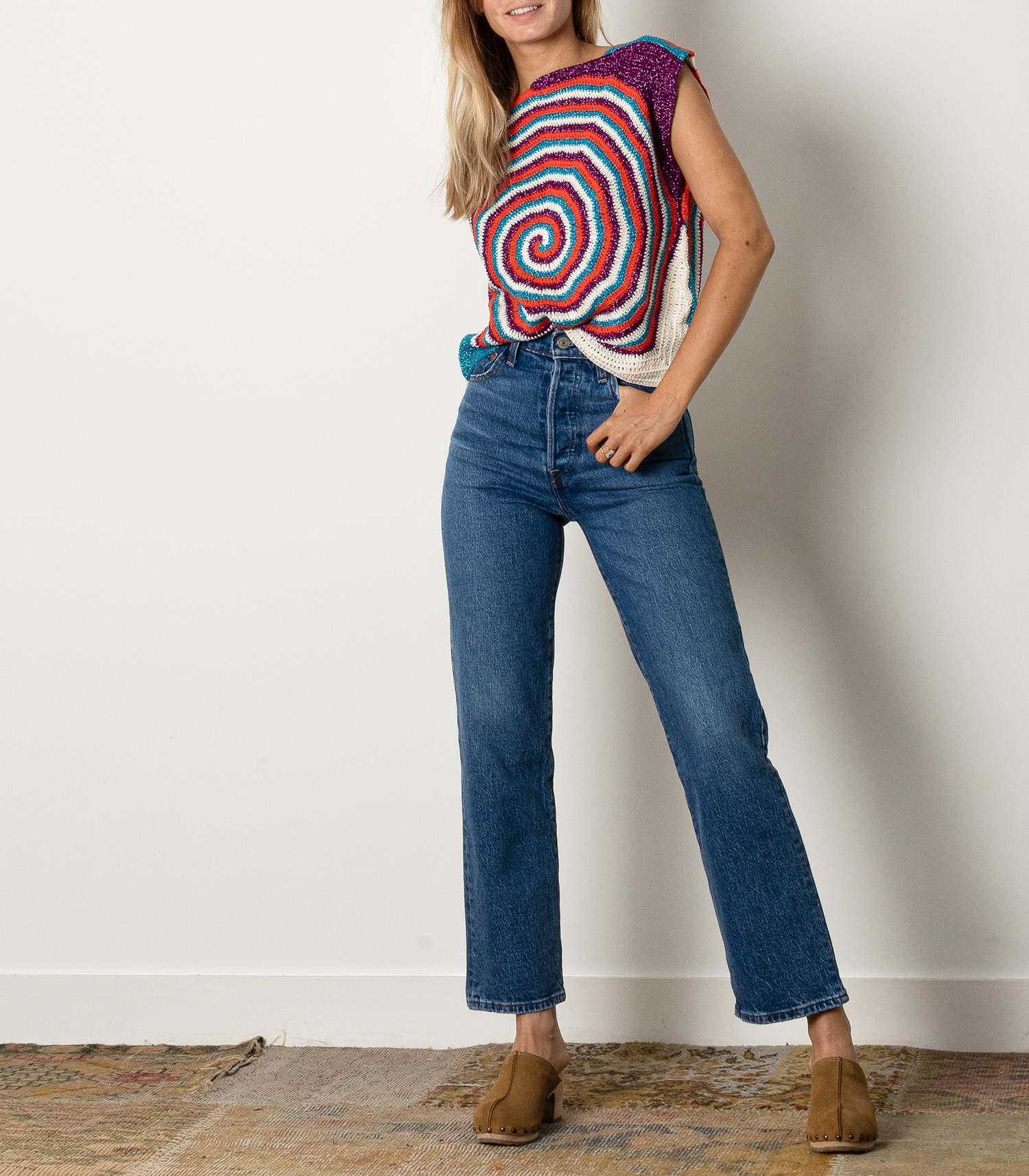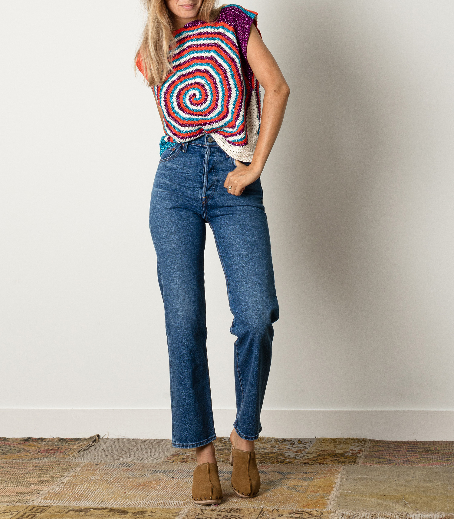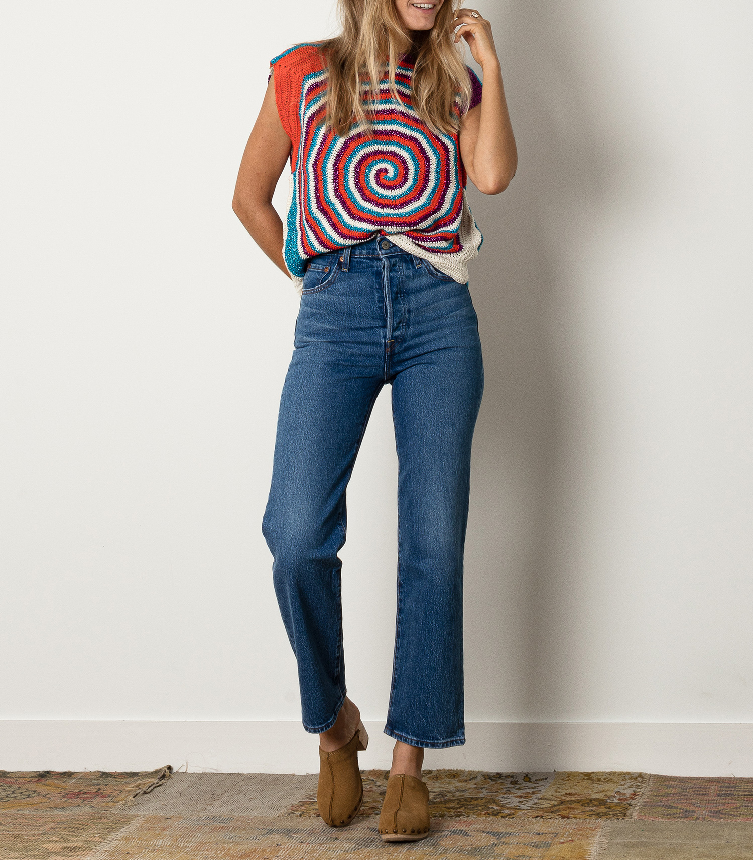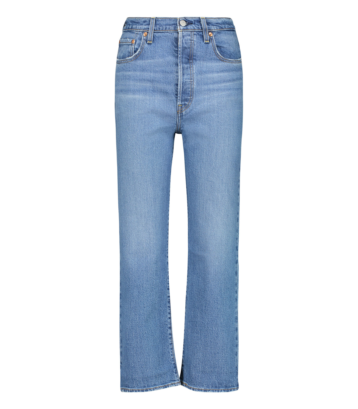 Jean Ribcage Straight Ankle Levi's, coloris Jive Together, doté d'une taille très haute et d'une jambe droite légèrement évasée, très flatteur pour la silhouette. Teinte assez délavée très facile à porter.