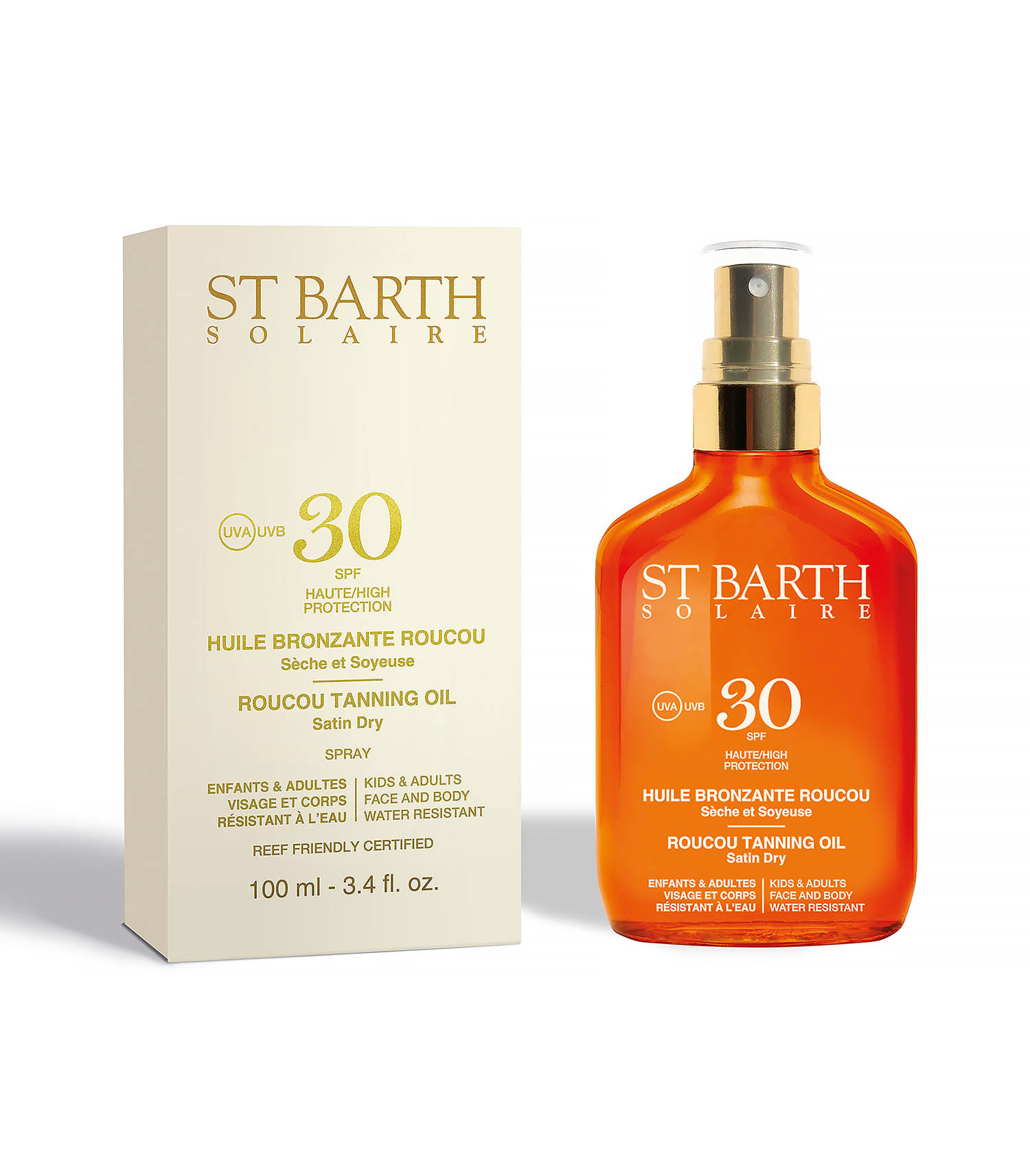Reconnue pour accélérer et sublimer le bronzage grâce à sa teneur en Provitamine A, l'Huile de Roucou est au coeur de la formule de cette Huile Bronzante SPF30 signée Ligne St Barth. Cette huile est associée un savant mélange d’huiles d’origine végétale de premier choix et d’extraits de plantes possédant de nombreux bienfaits.