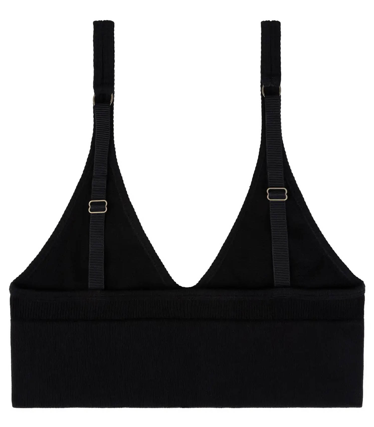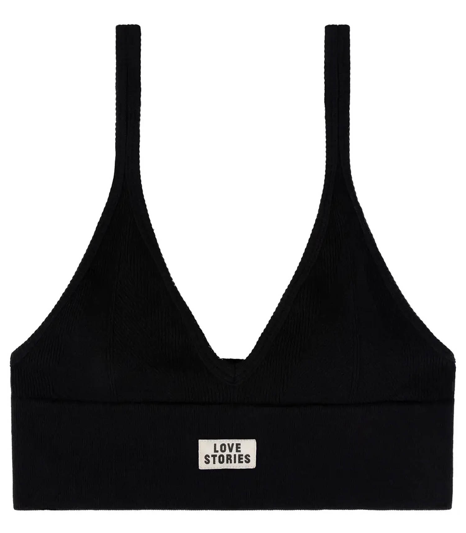 Brassière Posey Noir de la marque Love Stories. Cette bralette de sport noire allie confort et élégance avec son tissu doux et légèrement extensible en coton mélangé, qui présente une texture côtelée raffinée. Son col en V flatteur et sa large bande inférieure en tricot offrent un maintien léger tout en apportant une touche de confort. La bande est délicatement ornée du logo Love Stories pour une note subtile de style. Les bretelles réglables permettent un ajustement parfait, et ce modèle facile à enfiler est idéal pour les sports à faible impact comme le yoga. Un choix parfait pour allier performance et féminité.