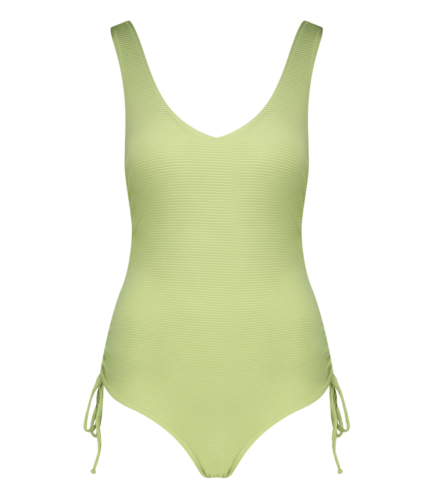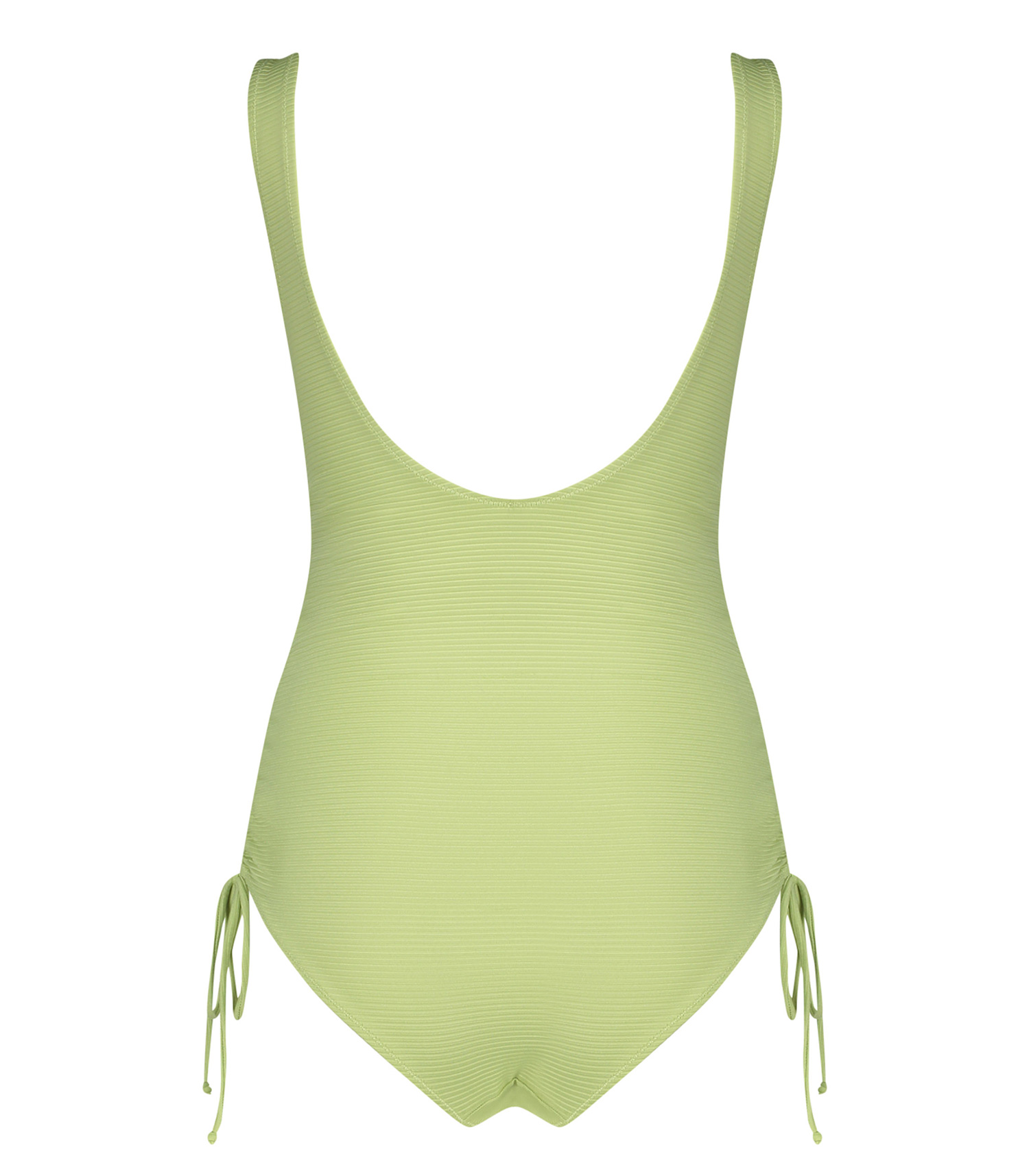 Coup de coeur pour le maillot de bain Lena Green de Love Stories, dans son irrésistible teinte vert pomme brillante à finition côtelée. Légèrement échancré, il a le chic pour allonger vos jambes, renforé par les cordons de serrage sur les côtés qui donnent un effet froncé.