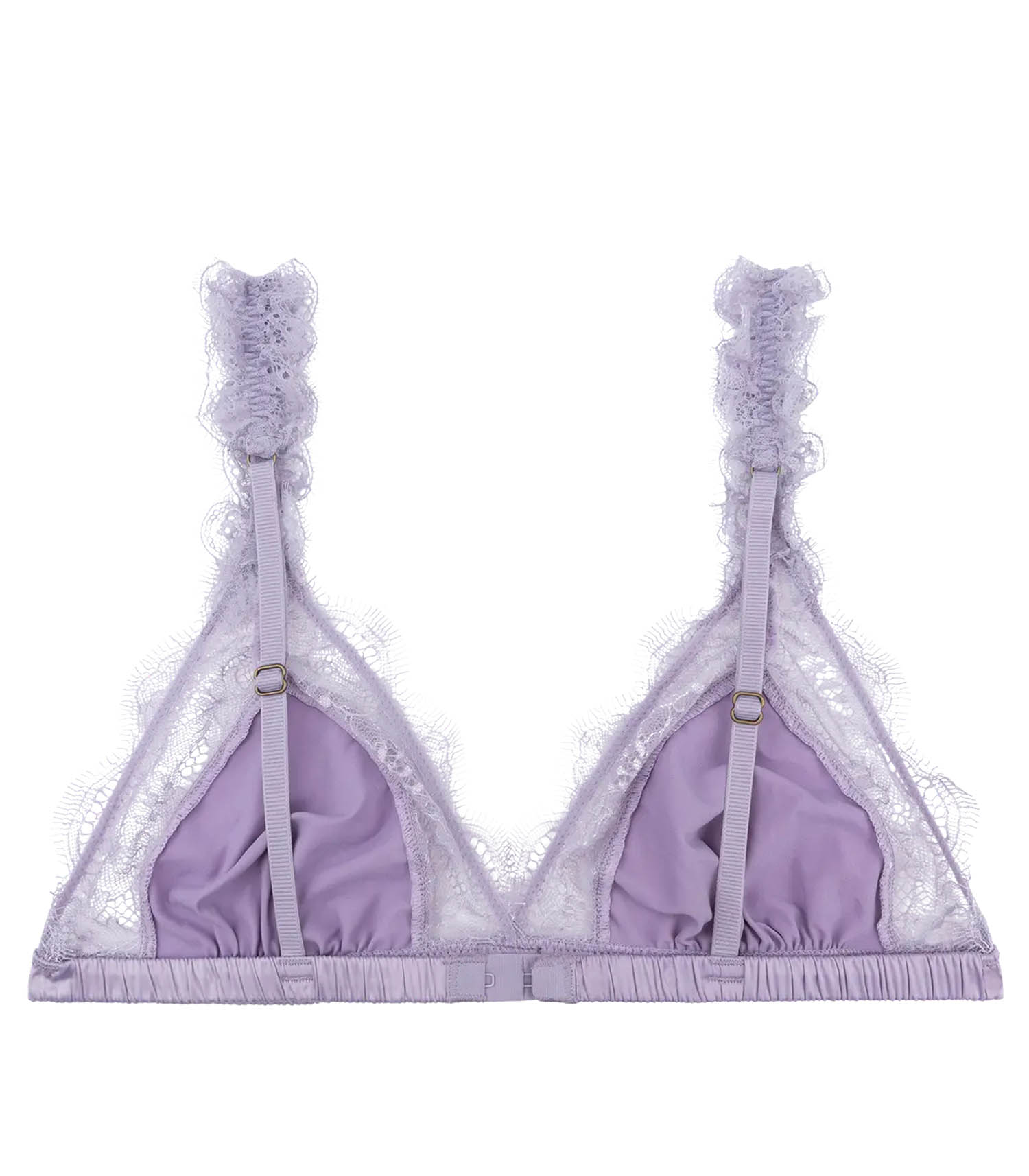 Craquez pour cette bralette triangle non doublée en lilas, un véritable best-seller de la marque Love Stories. Elle est dôtée de bretelles réglables ornées de dentelle pour un ajustement parfait.