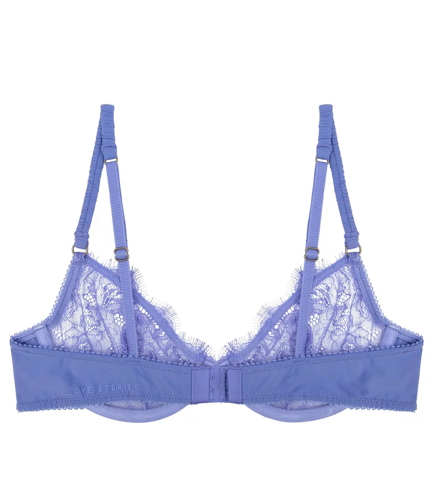 Soutien-gorge Romeo Purple de la marque Love Stories, un soutien-gorge à armatures non rembourré, de couleur violette en dentelle florale délicate. Ce modèle est doté de bonnets à armatures, qui assurent une coupe flatteuse et un maintien supplémentaire.