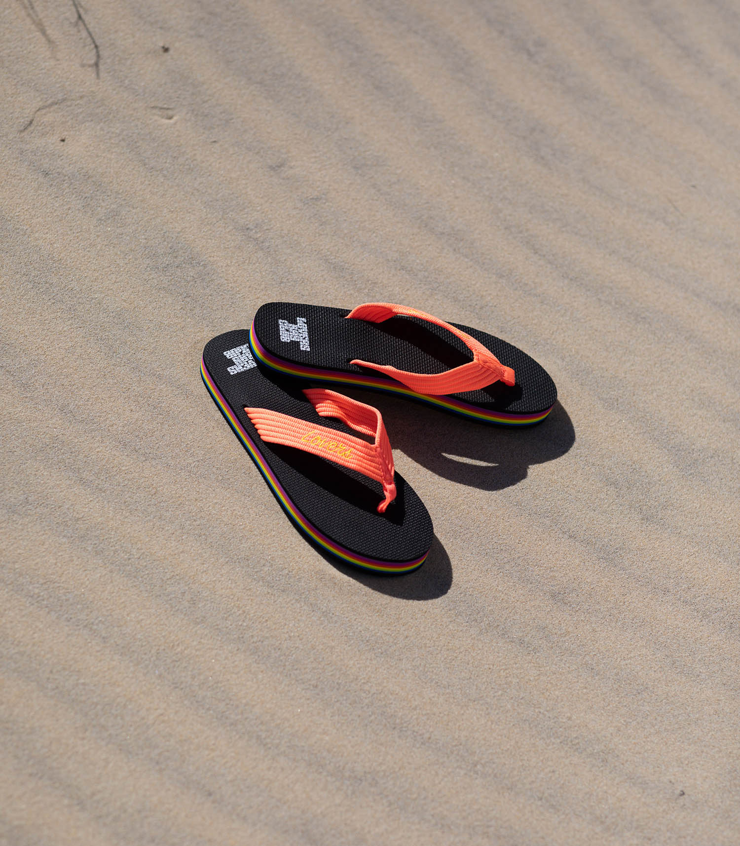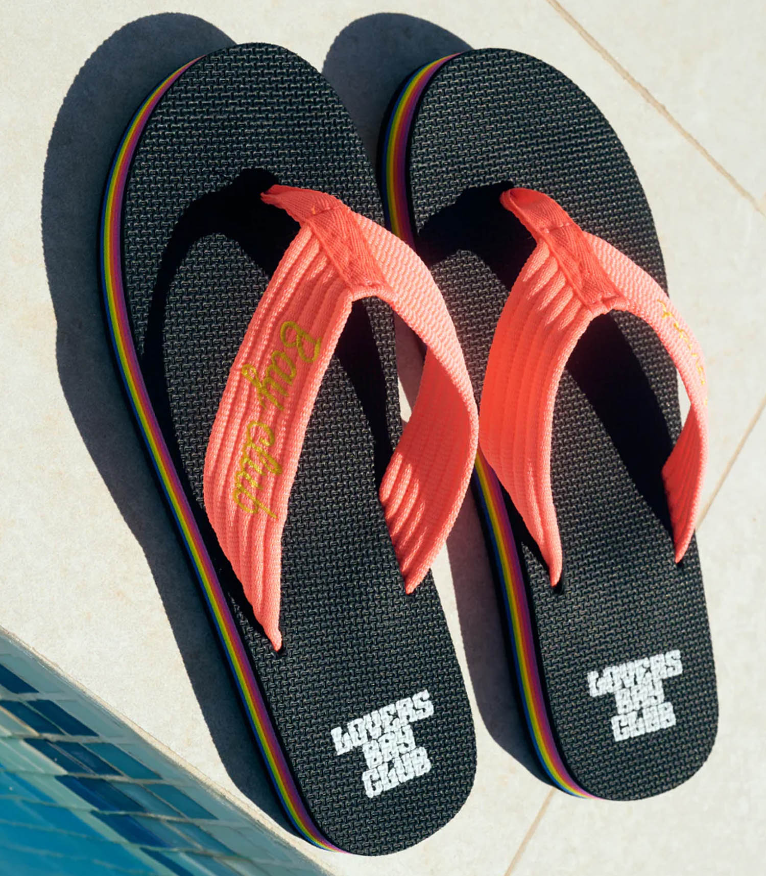Tongs Corail de la marque Lovers Bay Club. Cette paire de tongs noires avec des bandes de couleur corail offre un mariage élégant entre sobriété et éclat estival. Les tongs noires apportent une base classique et polyvalente, tandis que les bandes corail ajoutent une touche de couleur vive et ensoleillée. Que ce soit pour une journée à la plage ou pour une promenade en ville, ces tongs apporteront une touche de fraîcheur et de dynamisme à votre tenue estivale.
