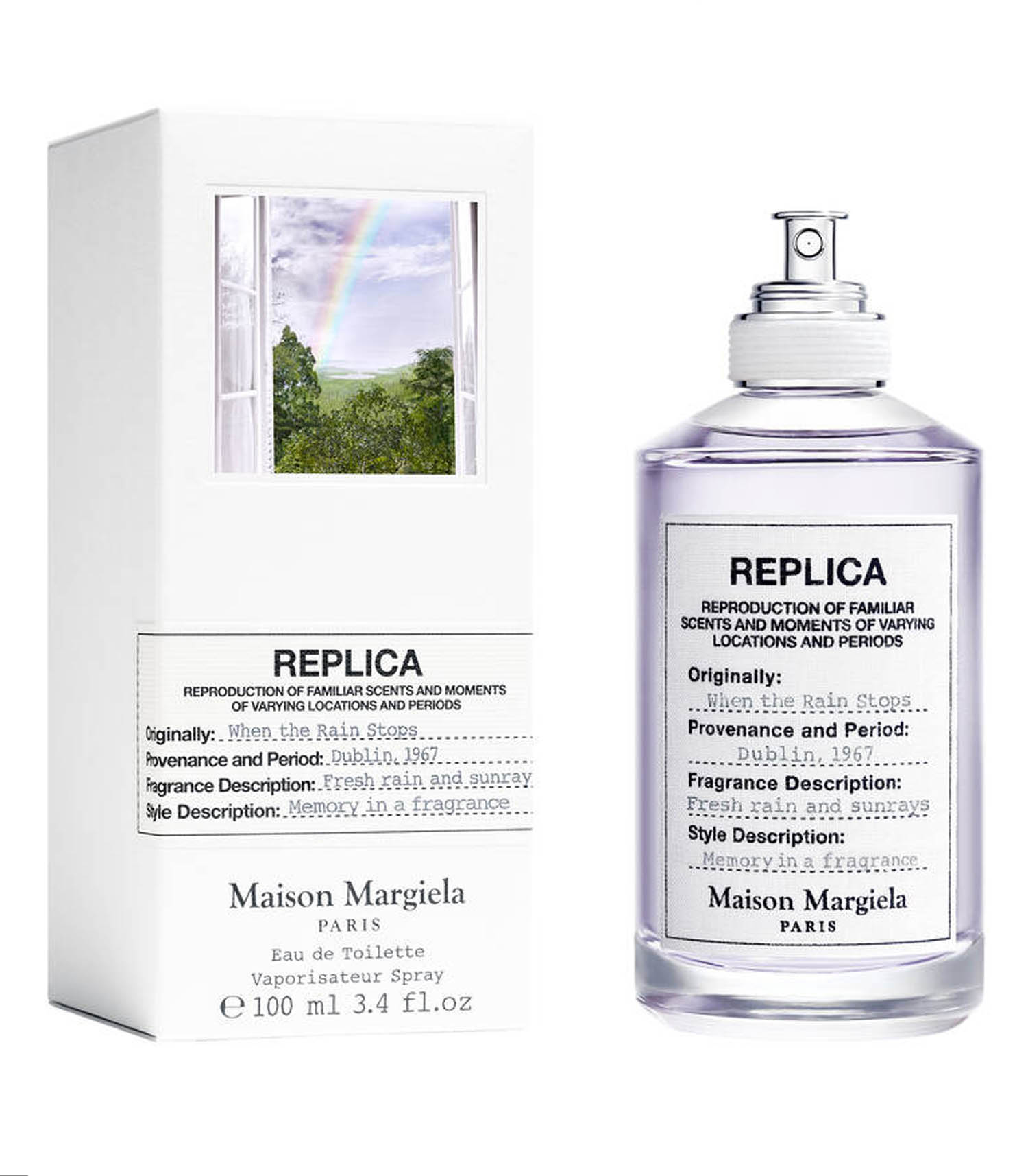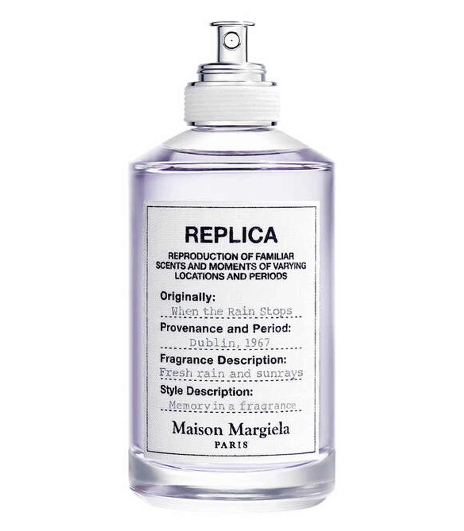 Eau de toilette When The Rain Stops signée Maison Margiela. Une fragrance fraîche qui évoque le retour du soleil après la pluie, la pensée d'une nature humide dès le retour des rayons lumineux.