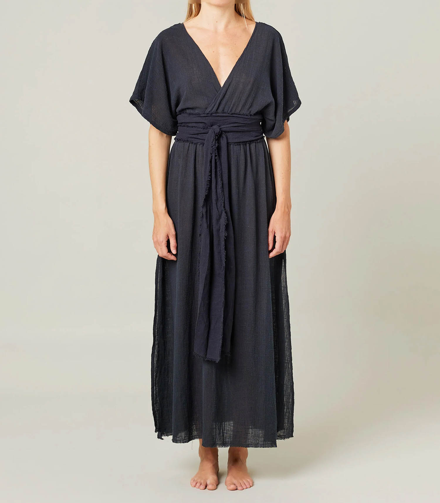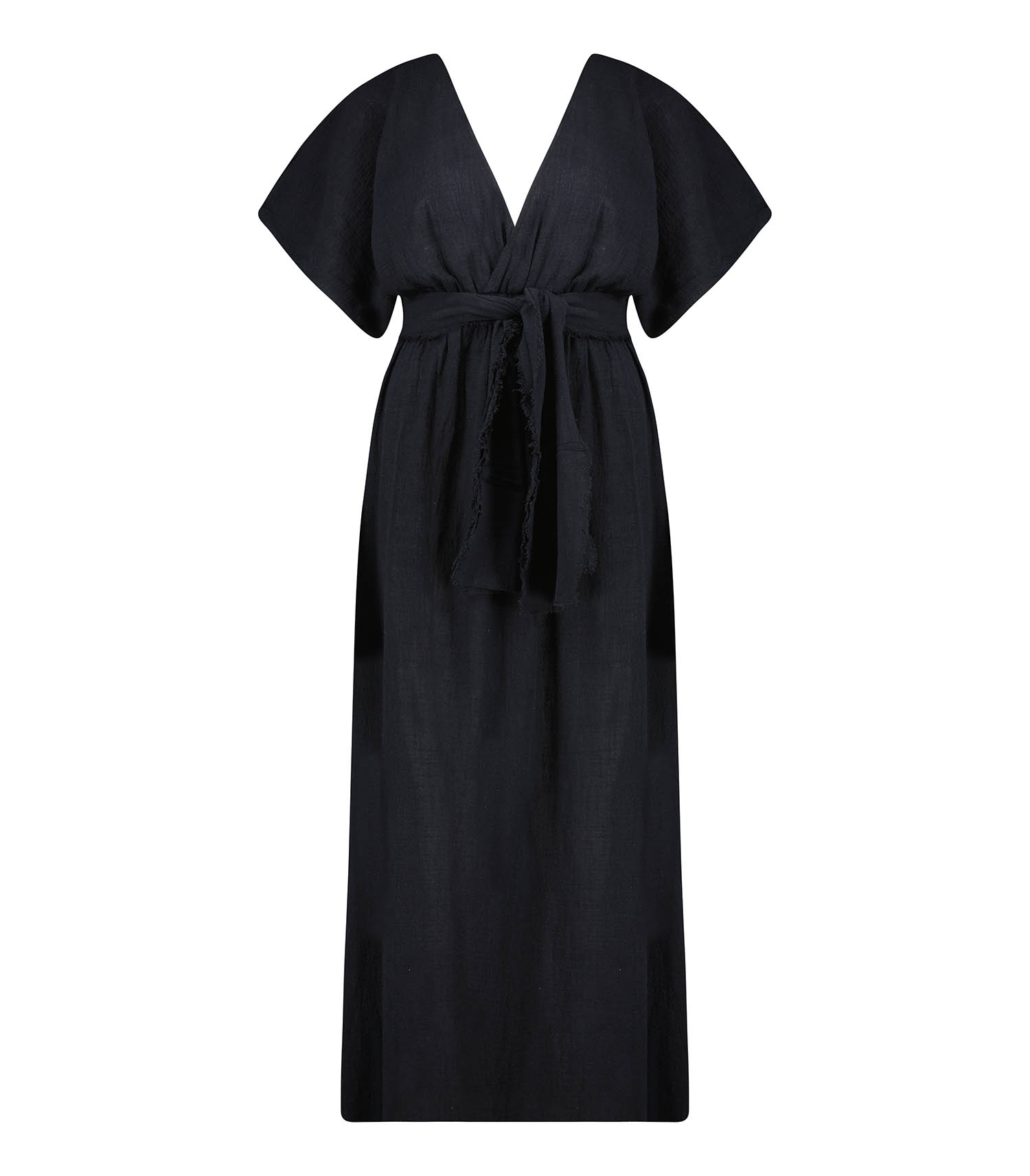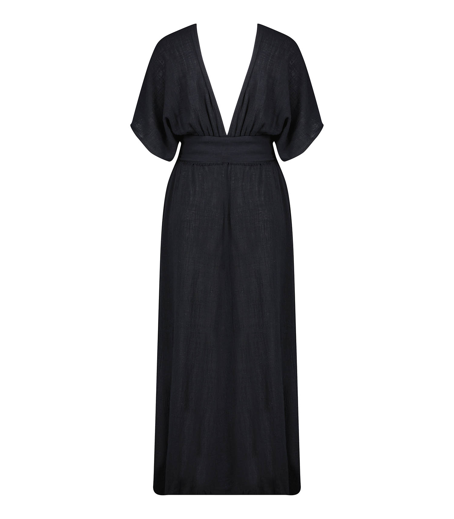 Robe longue Empire Black signée Maison Saint Julien, faite à la main de manière artisanale dans un atelier balinais familial et traditionnel. Grâce à sa coupe cache-coeur au buste et à sa taille marquée, elle met en valeur la silhouette. Une robe légère et aérienne, idéale pour une soirée sur la plage avec une paire de sandales.