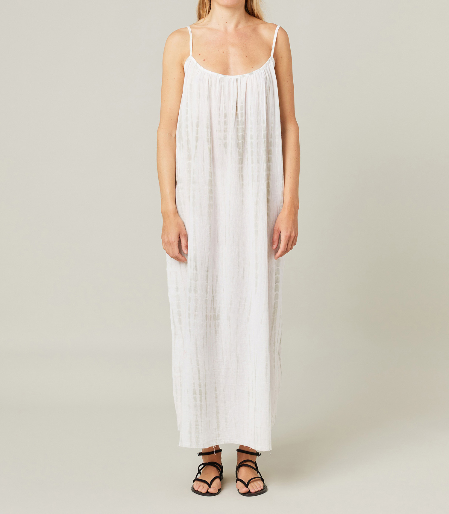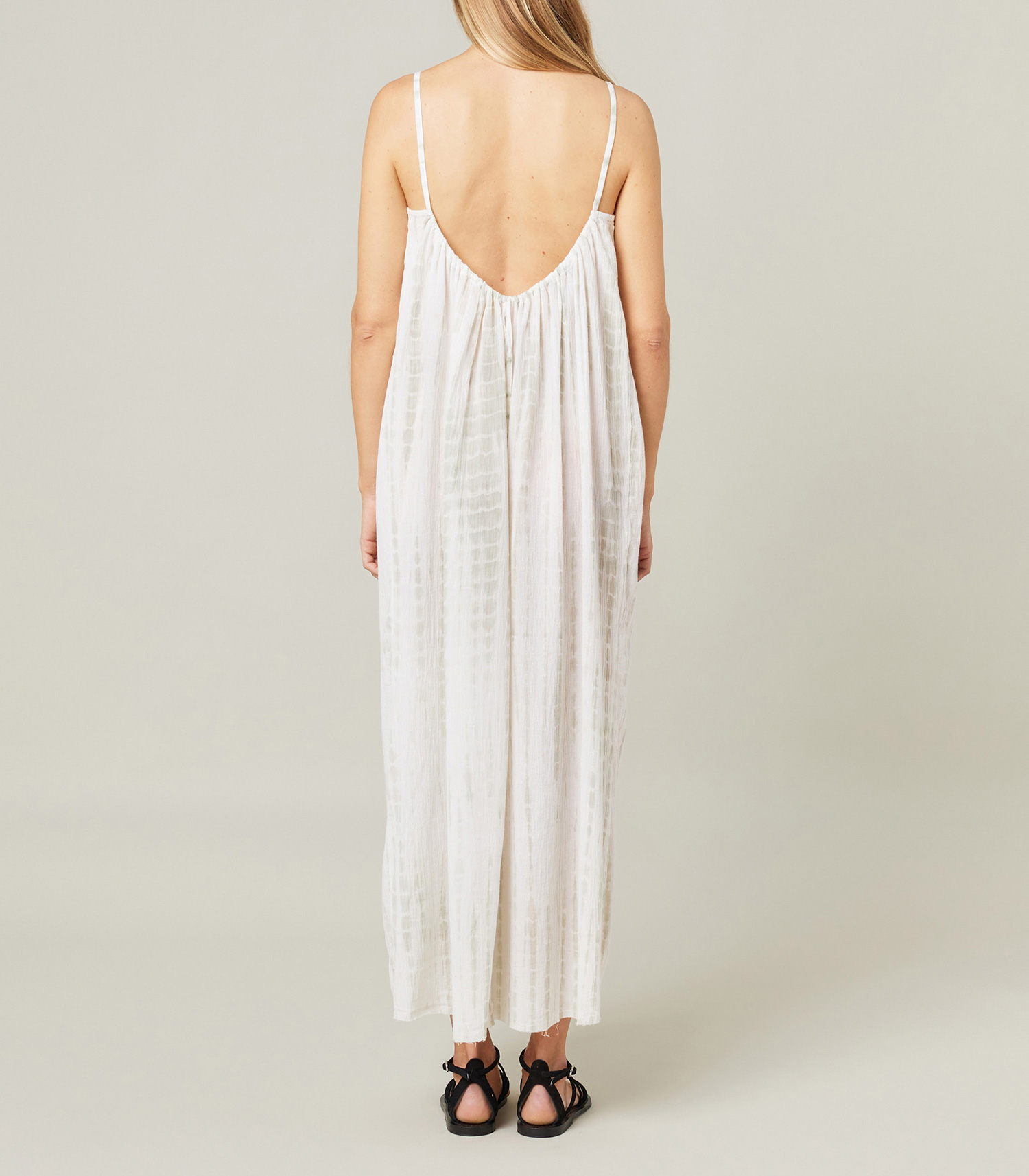 On craque pour la version tie & dye de la Robe plissée Palm Beach Maison Saint Julien, déclinée dans une teinture vert aquatique qui sera du plus bel effet en ville comme au bord de l'eau.