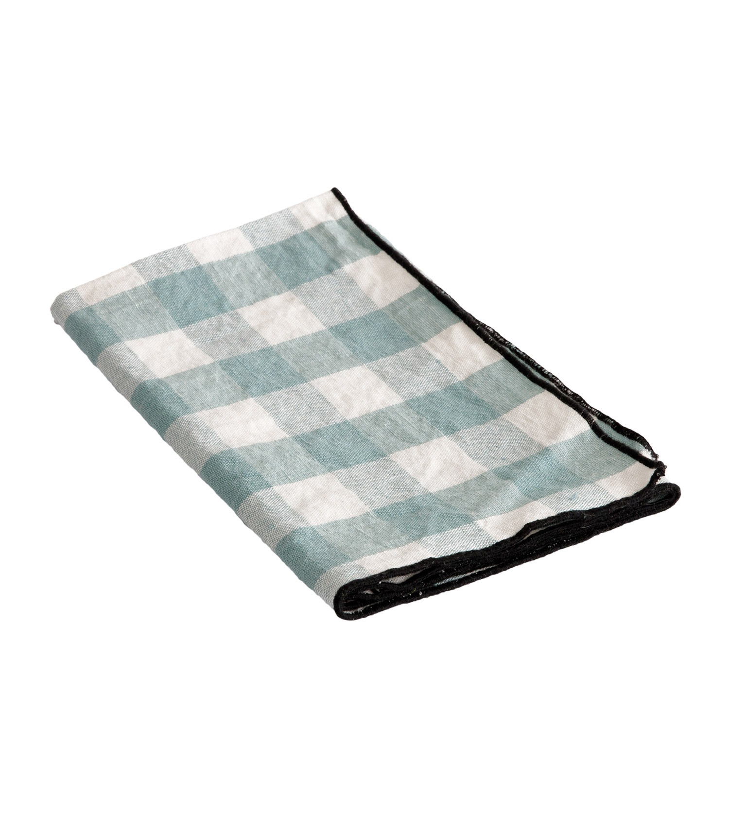 Serviette Bourdon Toile Vintage Vichy 45 x 45 cm signée Maison de Vacances. Impression carreaux vichy aux jolies teintes colorées, idéale pour colorer une table l'été. Finition bordure bourdon noir.