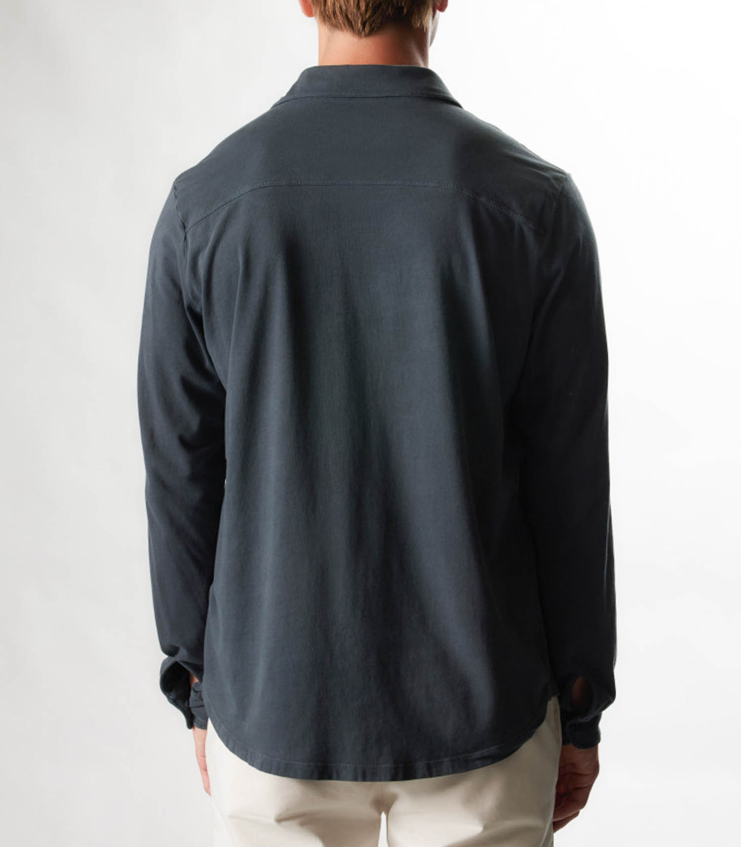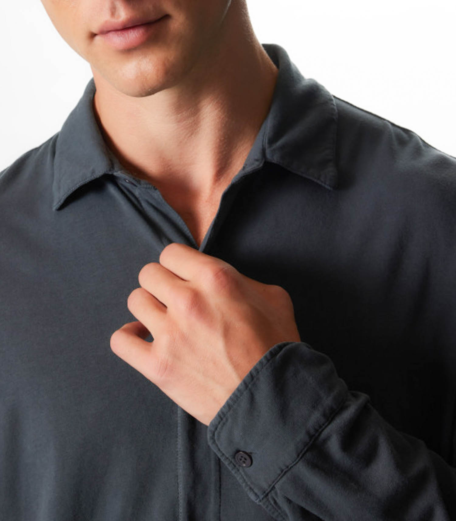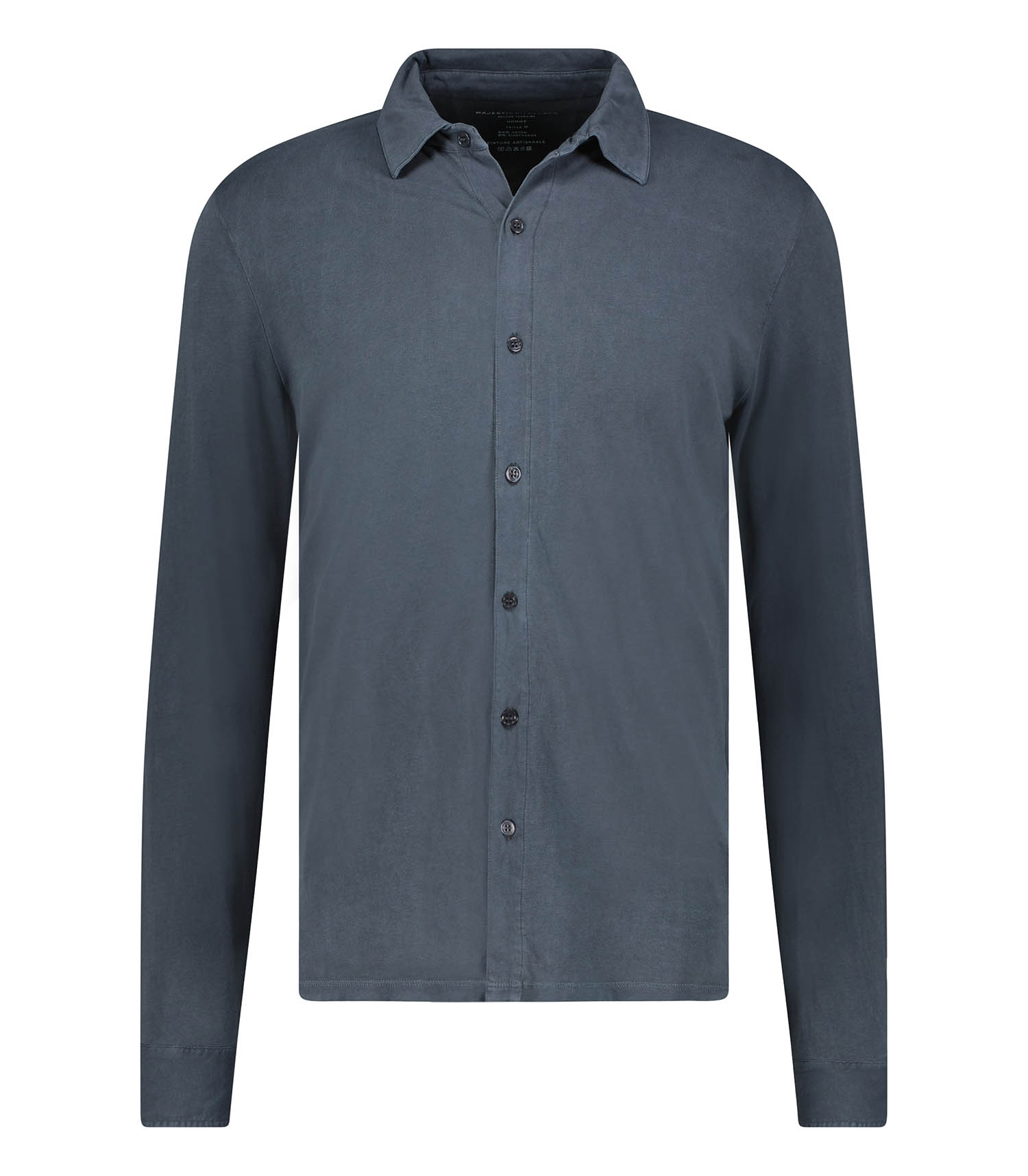 Chemise Manches Longues Homme Herman Crepuscule de la marque Majestic Filatures. Conçue sur une base de coton et élasthanne, elle offre un toucher doux et agréable à porter, tout en confort. Son coloris façon bleu pétrole en fait une pièce masculine et intemporelle.