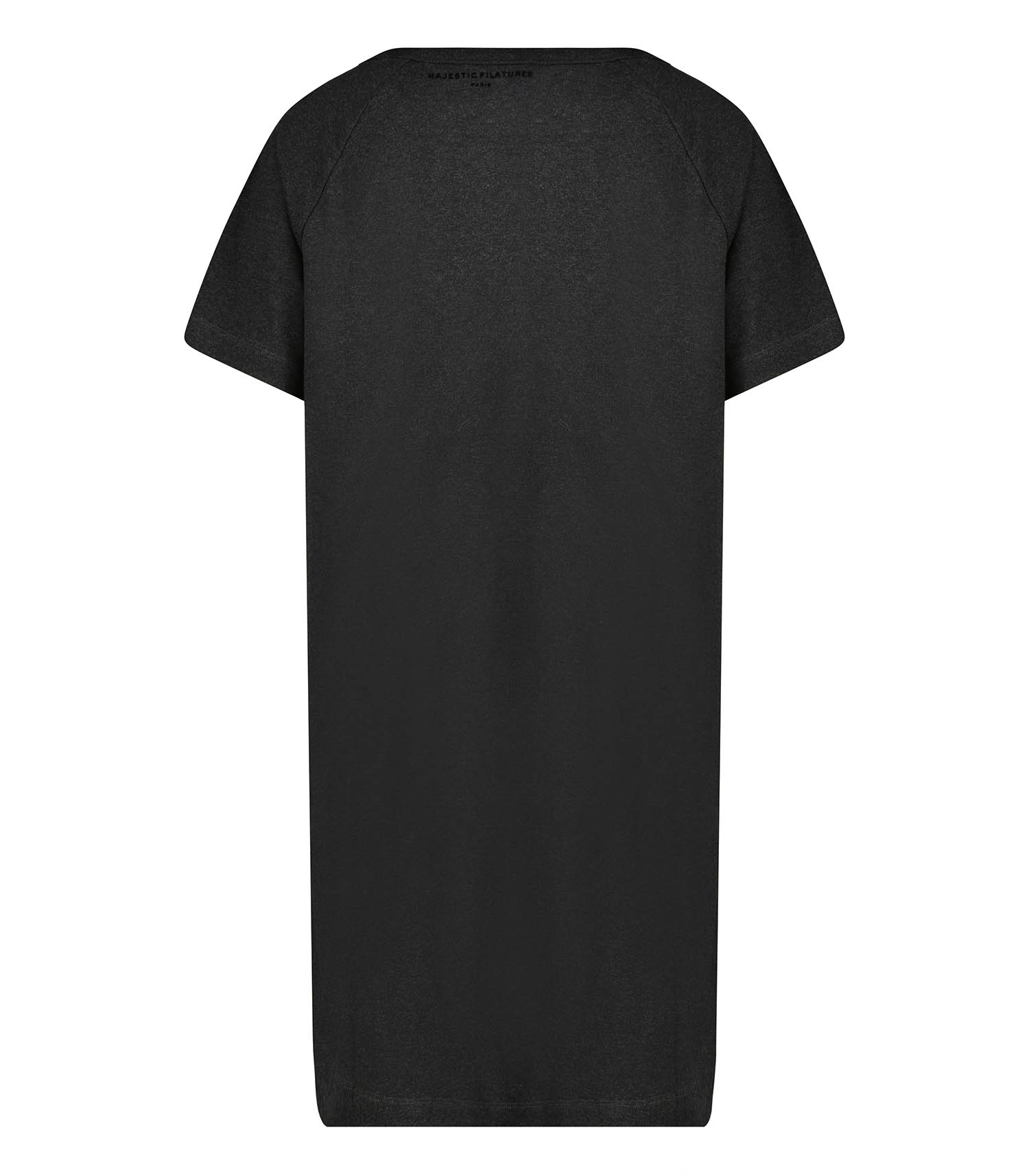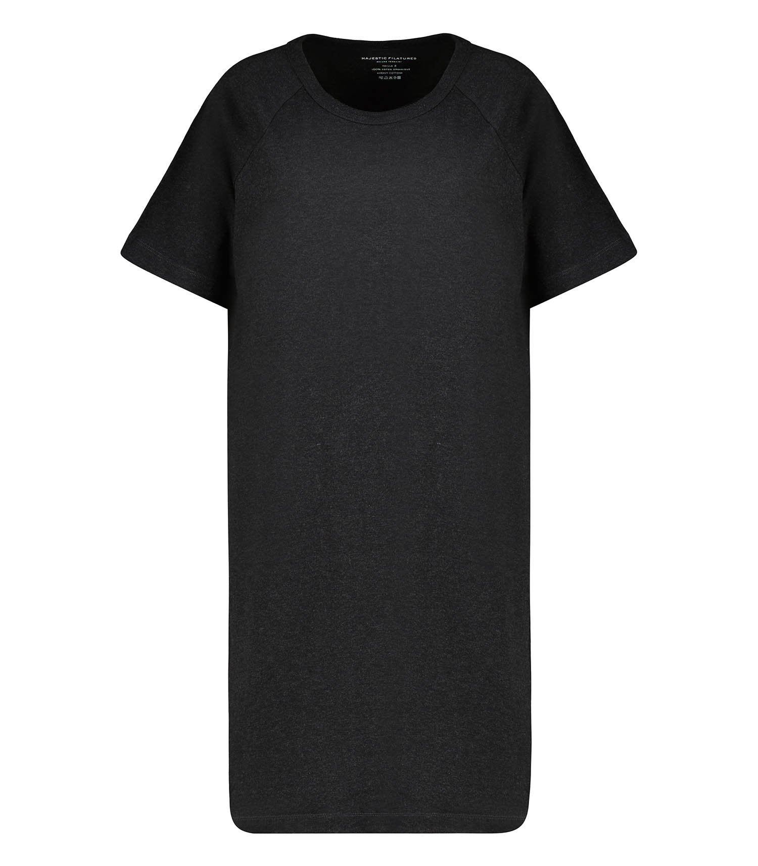 Robe Tee-shirt Col rond Noir chiné de la marque Majestic Filatures. Cette robe ample noire chinée à manches courtes, confectionnée en 100% Coton Organique "Heavy Cotton", est le must-have de cet automne. À l’arrivée des journées fraîches, elle s’associe parfaitement à un pull col roulé léger et une paire de collants. Côté chaussures, choisissez des mocassins pour une allure classique ou des boots pour une touche plus rock. Avec son design épuré et sa coupe ample, cette robe s’adapte à toutes les occasions, du quotidien aux sorties décontractées.