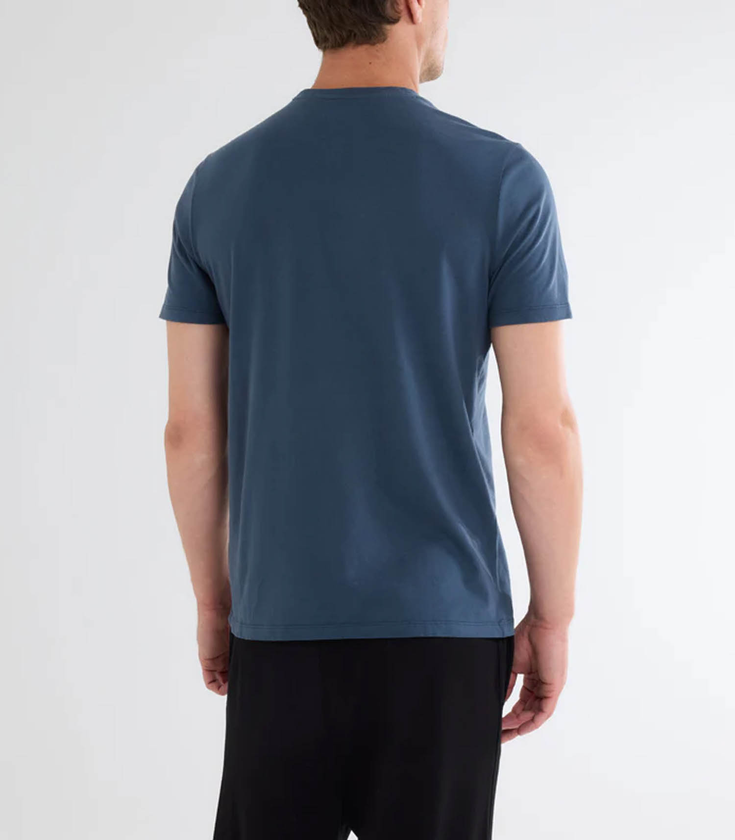 Tee-shirt Homme Col Rond Encre de la marque Majestic Filatures. Craquez pour ce tee-shirt couleur encre, un incontournable pour une garde-robe écoresponsable. Confectionné à partir d'un mélange de Coton Organique et de Coton Recyclé, il offre un confort durable tout en minimisant son impact environnemental. Son col rond classique et ses manches courtes en font une pièce polyvalente, idéale pour un look décontracté.