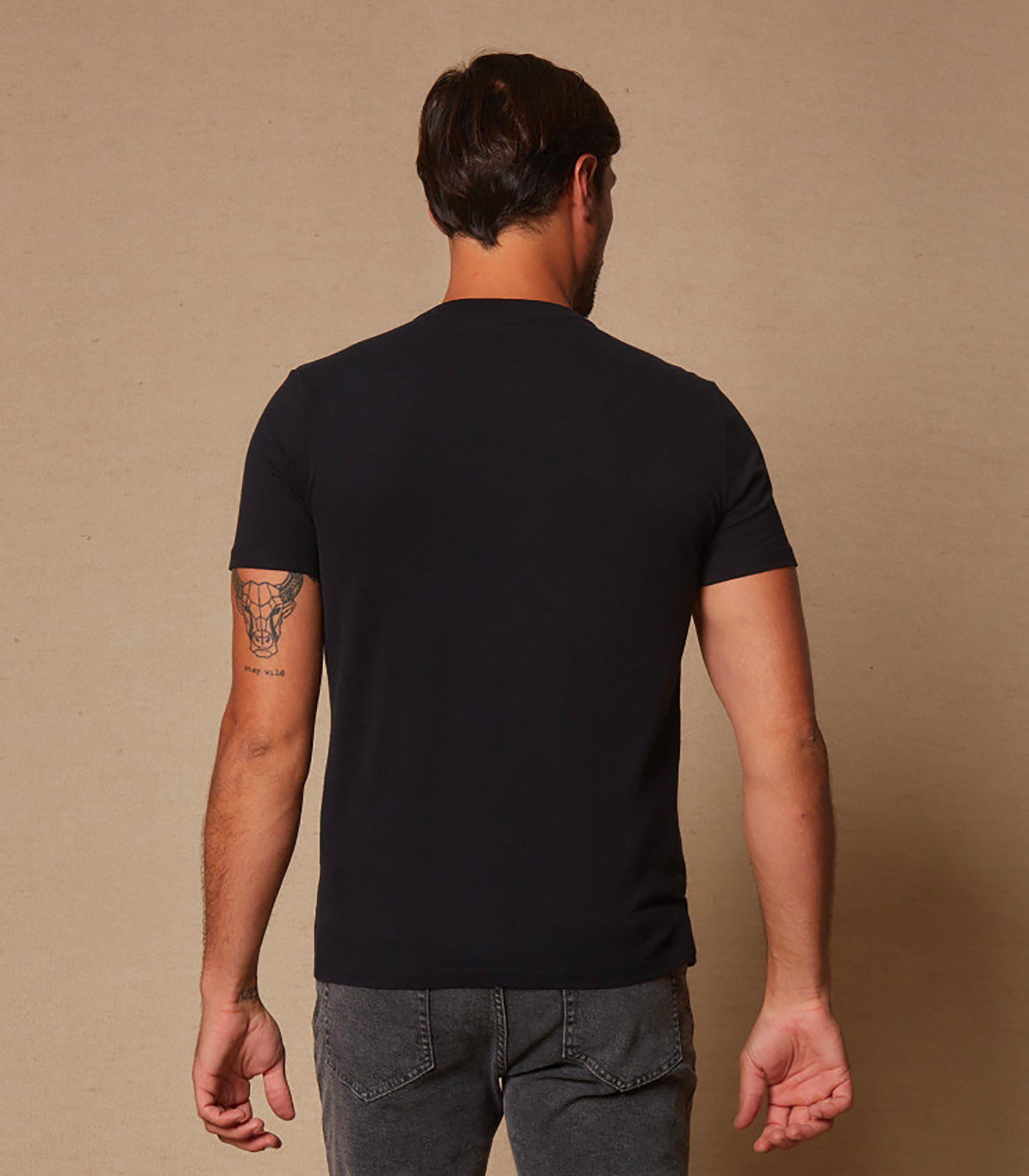 Tee-shirt Julien pour homme de la marque Majestic Filatures, le tee-shirt noir basique indispensable au vestiaire masculin.