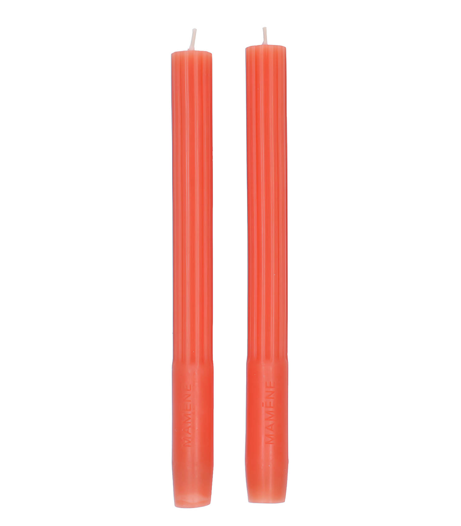Lot de 2 chandelles orange corail réalisées en Europe. Optez pour sa couleur audacieuse et apportez une touche lumineuse à votre intérieur. Mèches fabriquées en pur coton pour une qualité de brûlage optimale.