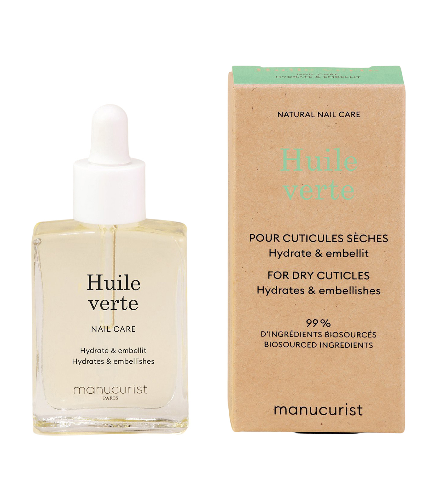 Soin pour ongles Huile Verte de la marque Manucurist, une huile nourissante pour les ongles et les cuticules. Composée de 6 huiles aux actifs multiples, c'est un soin riche qui favorise la repousse et régénère les cuticules. Idéale avant de commencer sa manicure Green Flash.