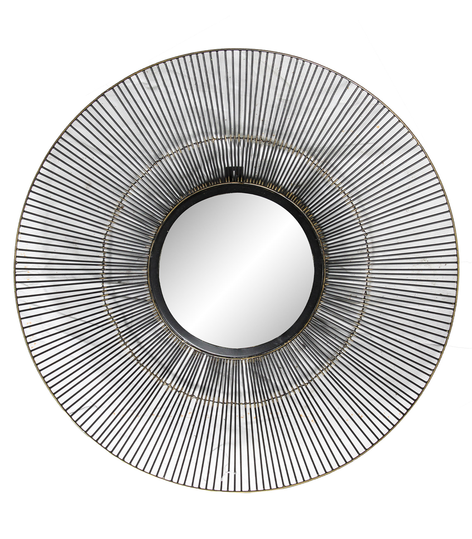 Miroir rond Files L Manufactori en bronze. Un petit miroir inséré dans une structure en bronze de forme coupole ajourée pour un effet des plus décoratifs au mur.