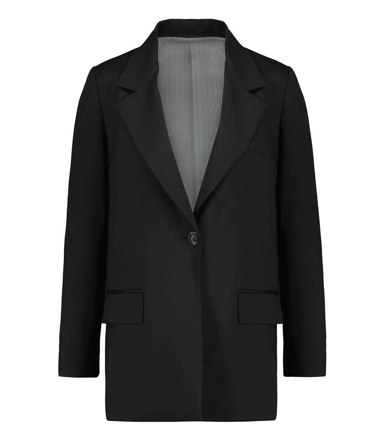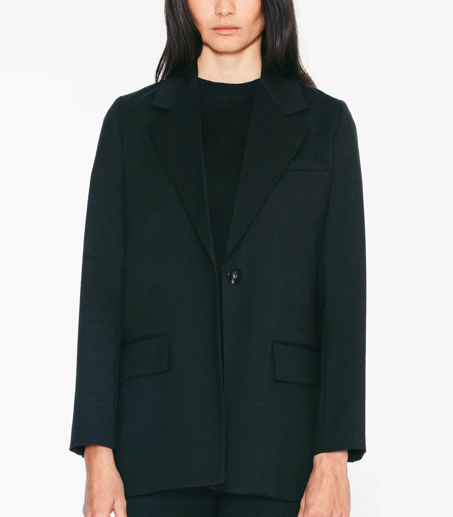Blazer Norton Black de la marque Margaux Lonnberg. L'indispensable de toute garde-robe féminine, cette veste de costume noire est la pièce clé à avoir absolument. Son design parfaitement taillé offre une coupe impeccable qui épouse élégamment la silhouette. Associée à un jean délavé légèrement usé, elle crée un contraste audacieux et tendance, que l'on affectionne tout particulièrement. Idéale pour les journées au bureau comme pour les sorties en ville, cette veste polyvalente se prête à de nombreuses occasions.