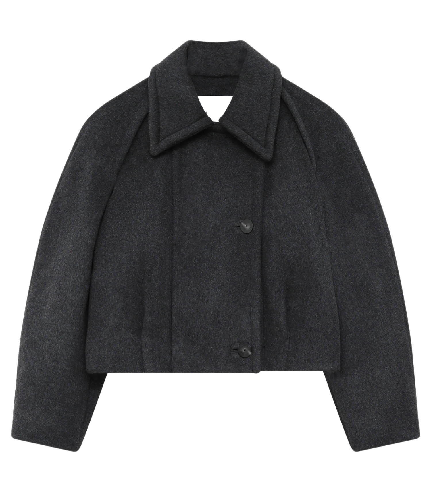Blouson Aimé signé Margaux Lonnberg. Ce modèle revisite la manteau gris d'hiver classique, dans une coupe moderne raccourcie. Ses détails subtils ton sur ton en font un modèle élégant et intemporel.