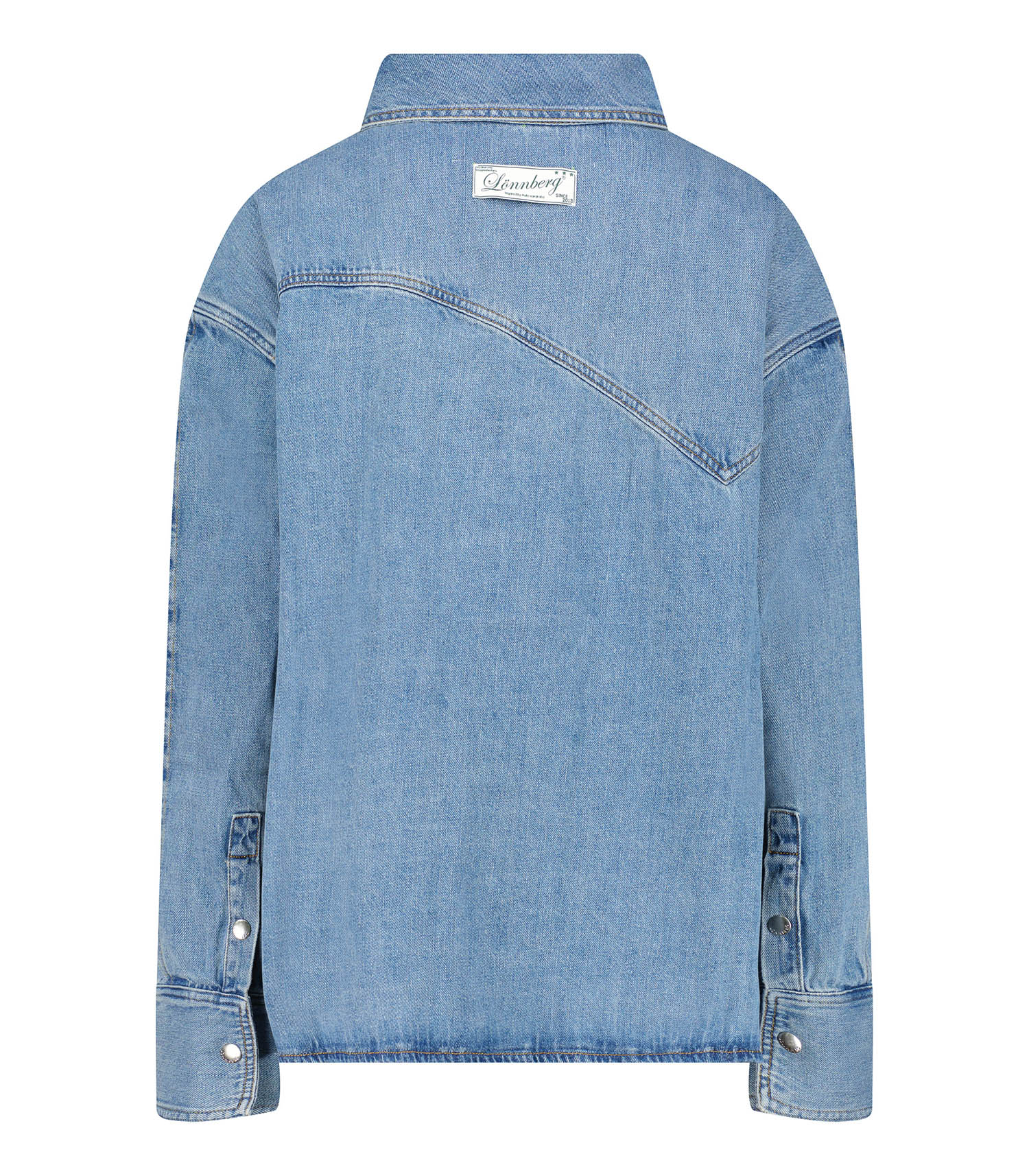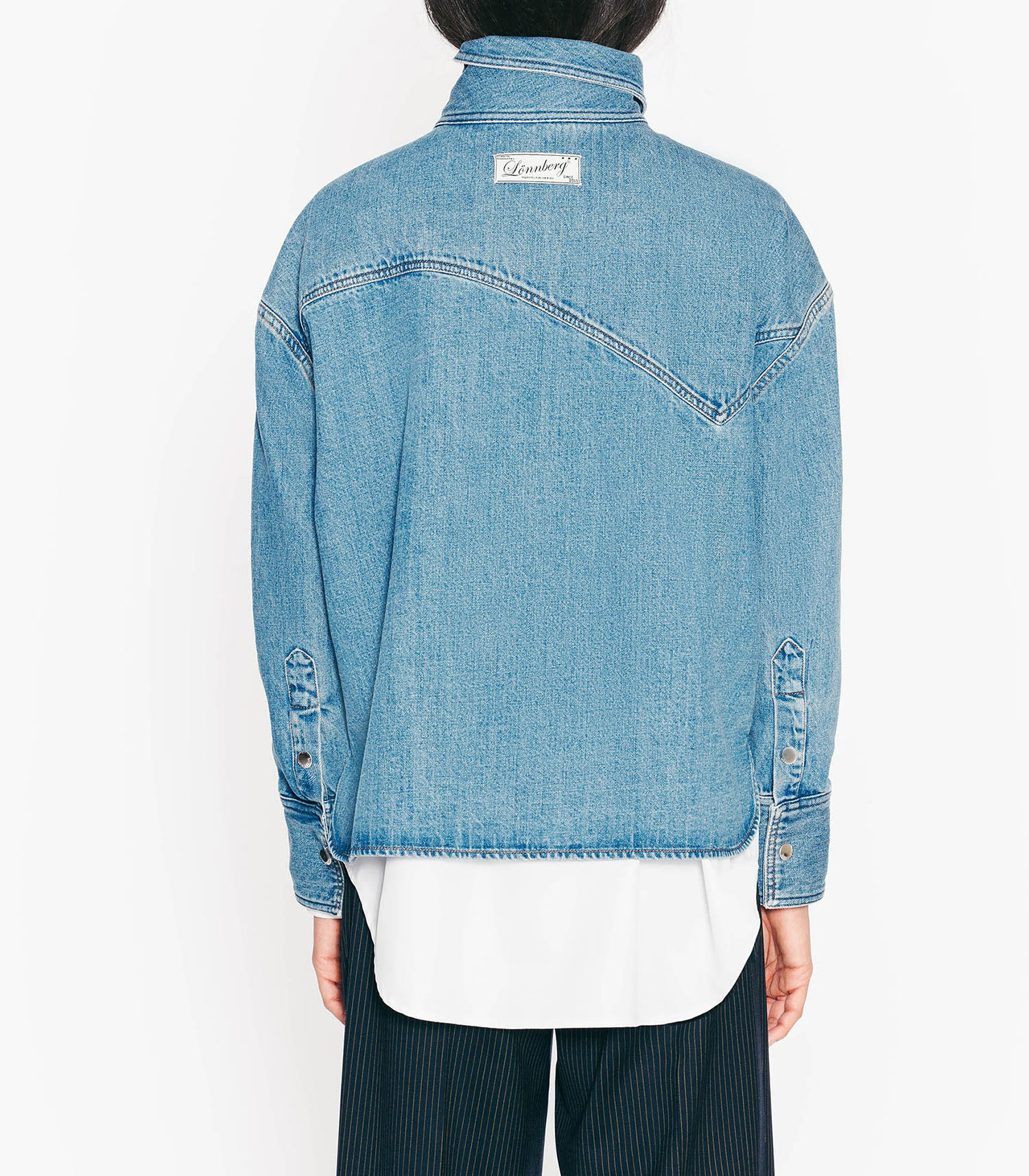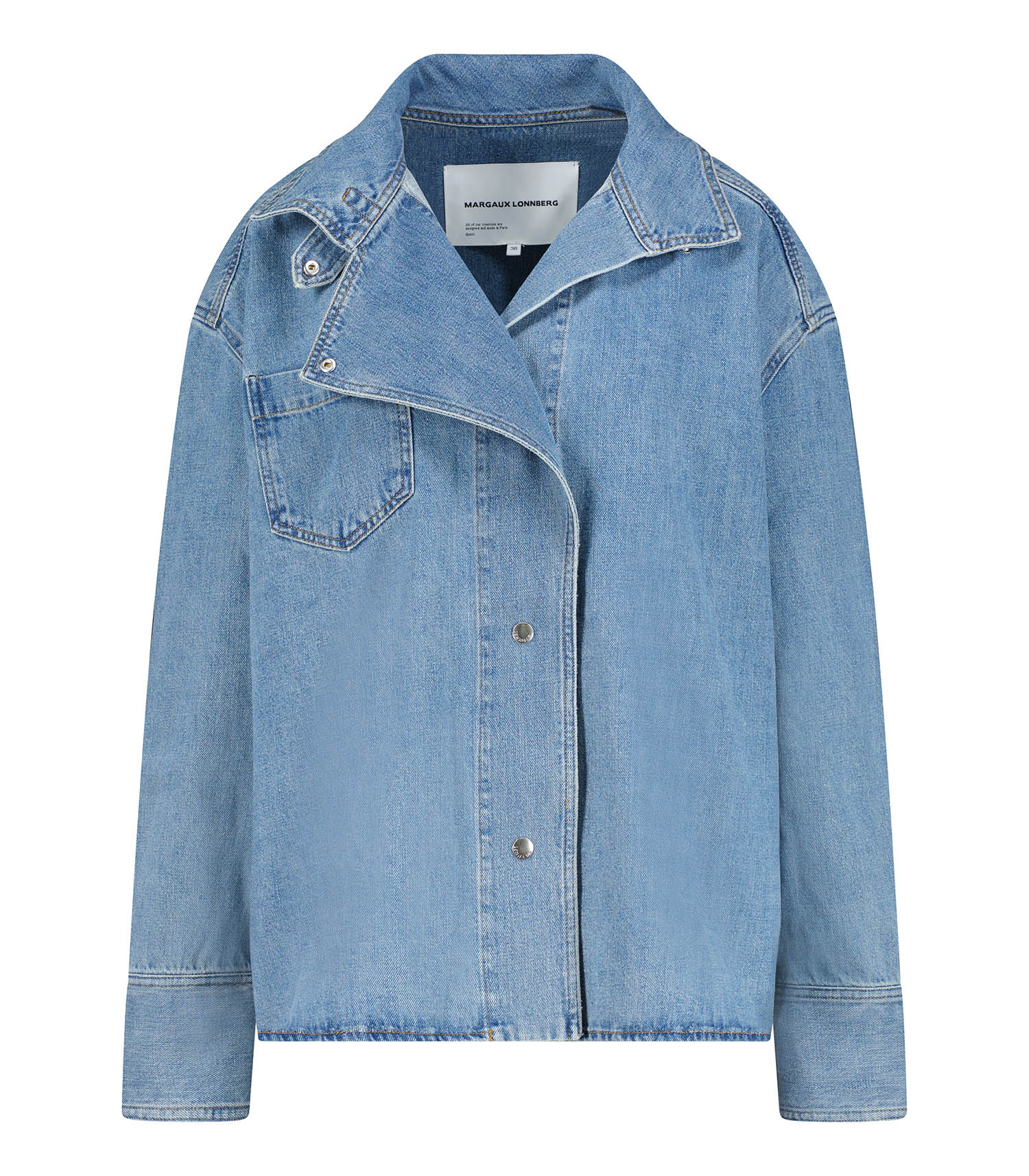 Inspirée par une veste, cette chemise en jean Egan signée Margaux Lonnberg présente un col destructuré et asymétrique dans un esprit couture. Adoptez-la au quotidien pour une tenue casual qui ne passe pas inaperçue.