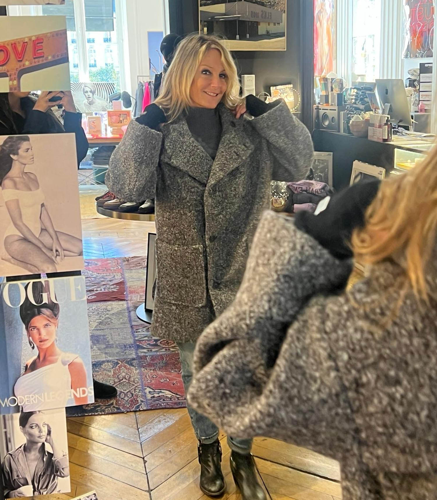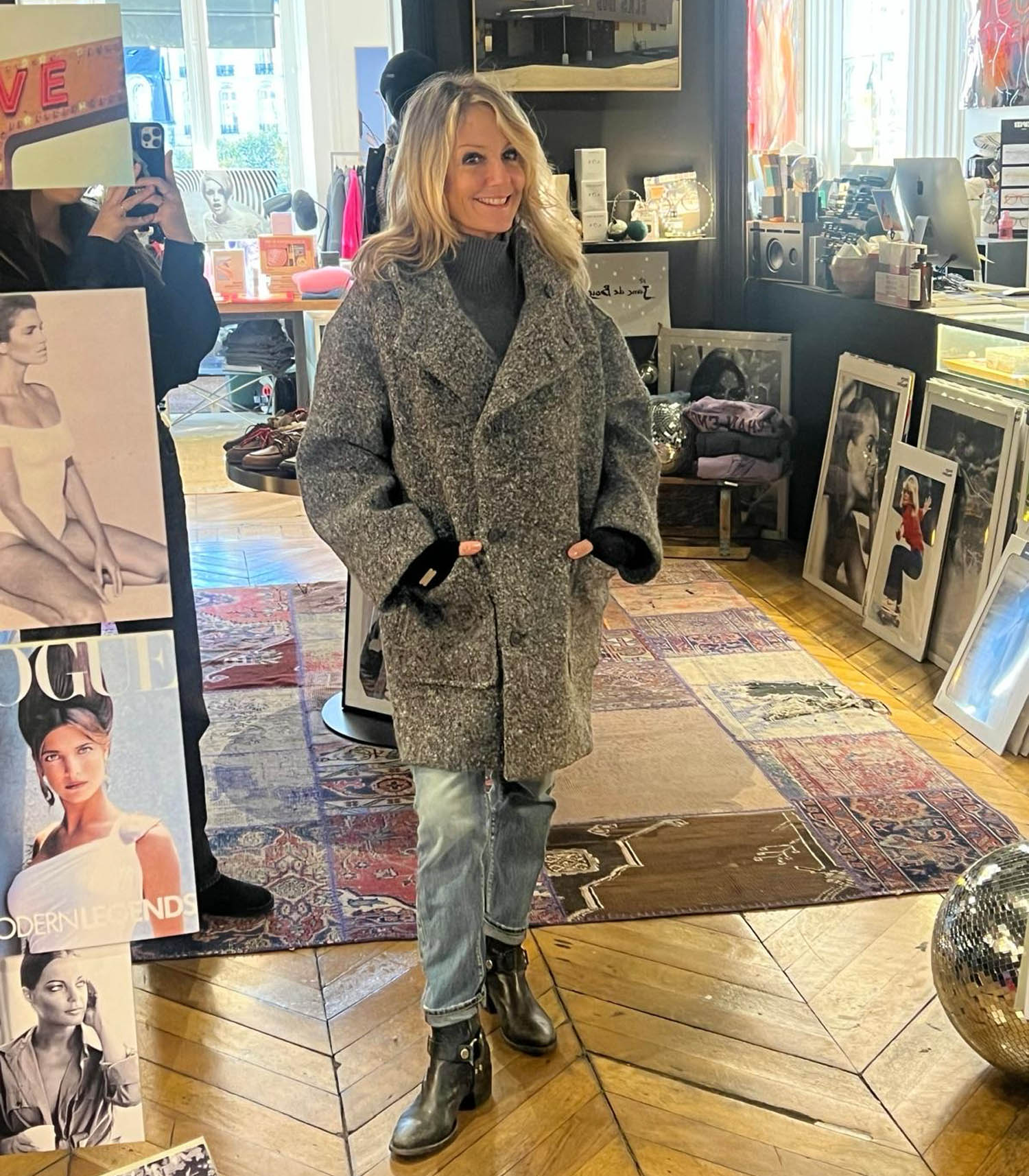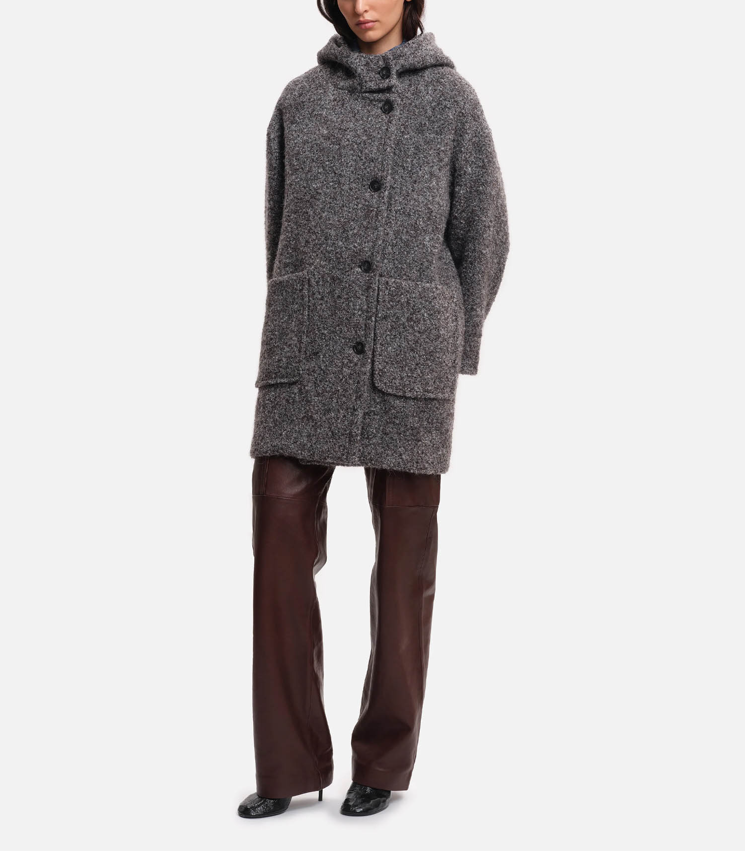Manteau Marin Grey signé Margaux Lonnberg. Ce design Marin réinvente le caban avec une coupe enveloppante, une capuche généreuse et un double boutonnage au charme intemporel.
