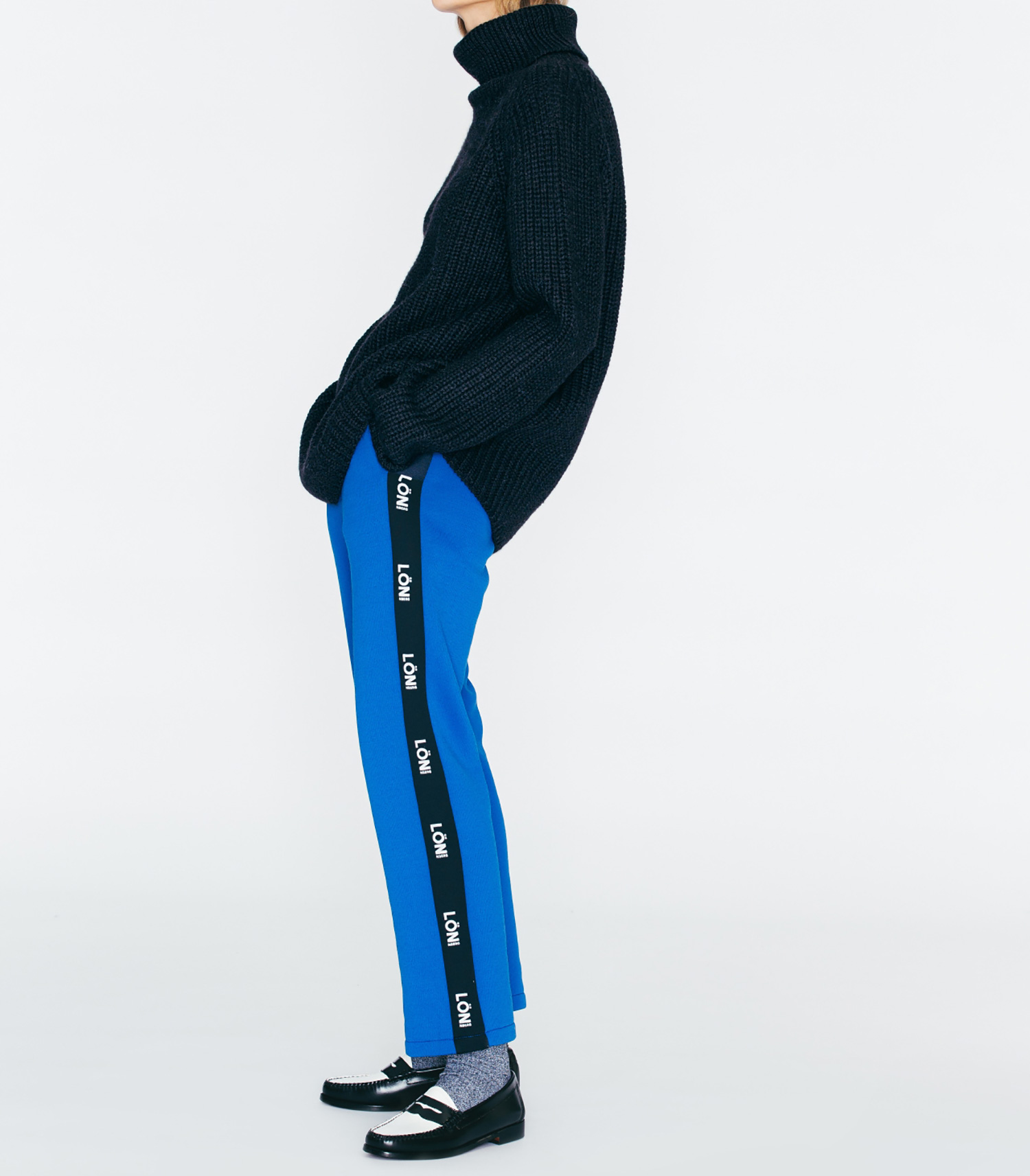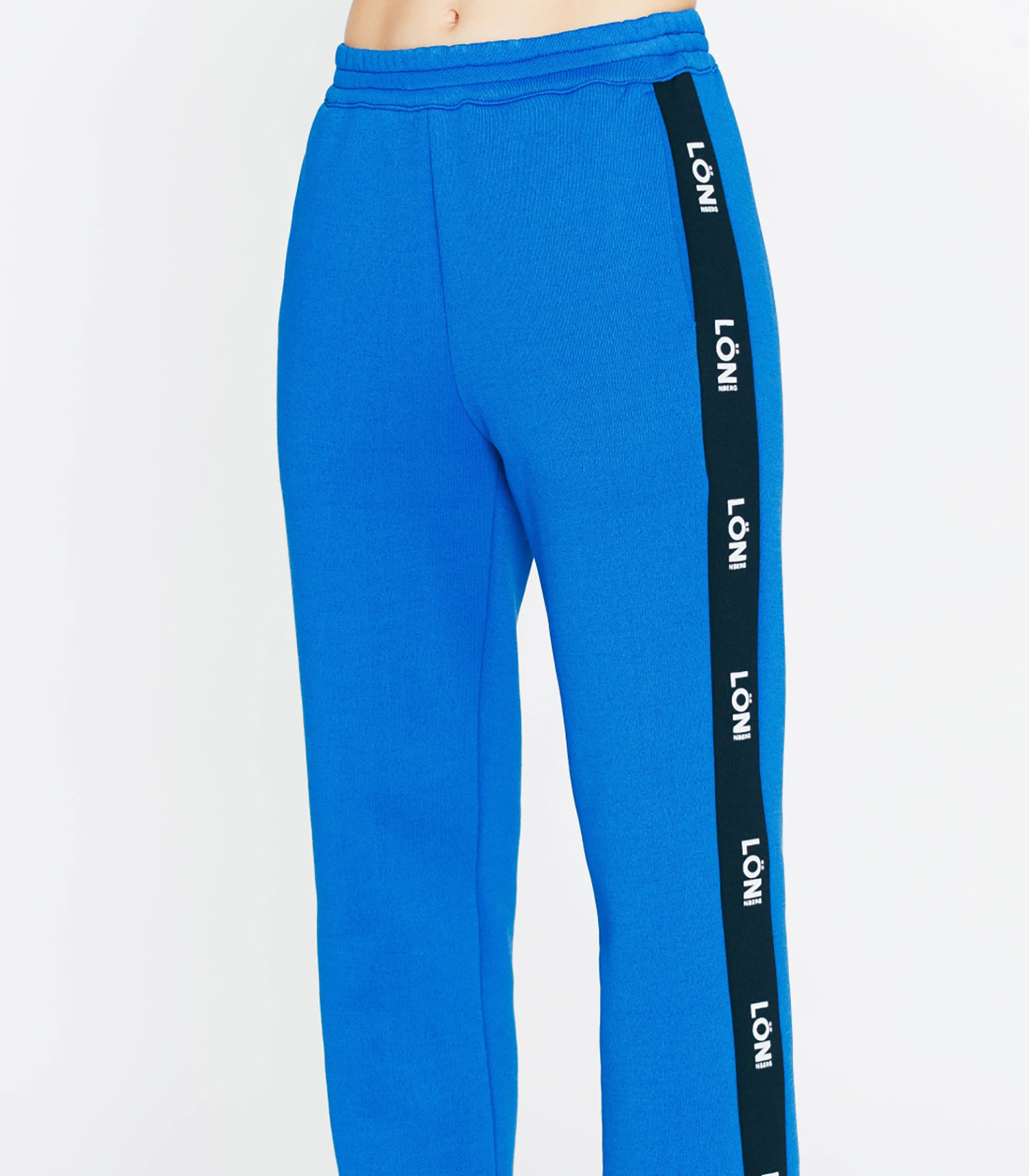 La célèbre maison parisienne se lance le défi de l'athleisure avec un ensemble aux lignes sportwear et au coloris électrique. Découvrez le pantalon de Jogging Jared signé Margaux Lonnberg en tissu technique bleu Klein. Il adopte une ceinture élastiquée ainsi qu'une bande bande noire latérale sur l'extérieur de la jambe avec le avec le logo de la marque en blanc. La coupe est droite pour une allure effortless et une fausse poche passepoilée au dos agrémente son style.