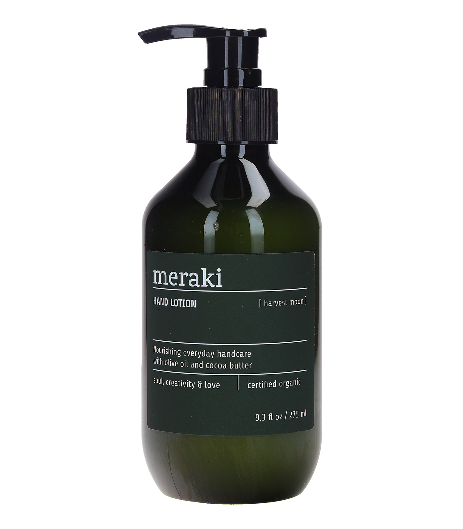 Crème pour les mains Harvest Moon 275 ml de la marque Meraki. Senteur fraiche d'aloe vera et olive.