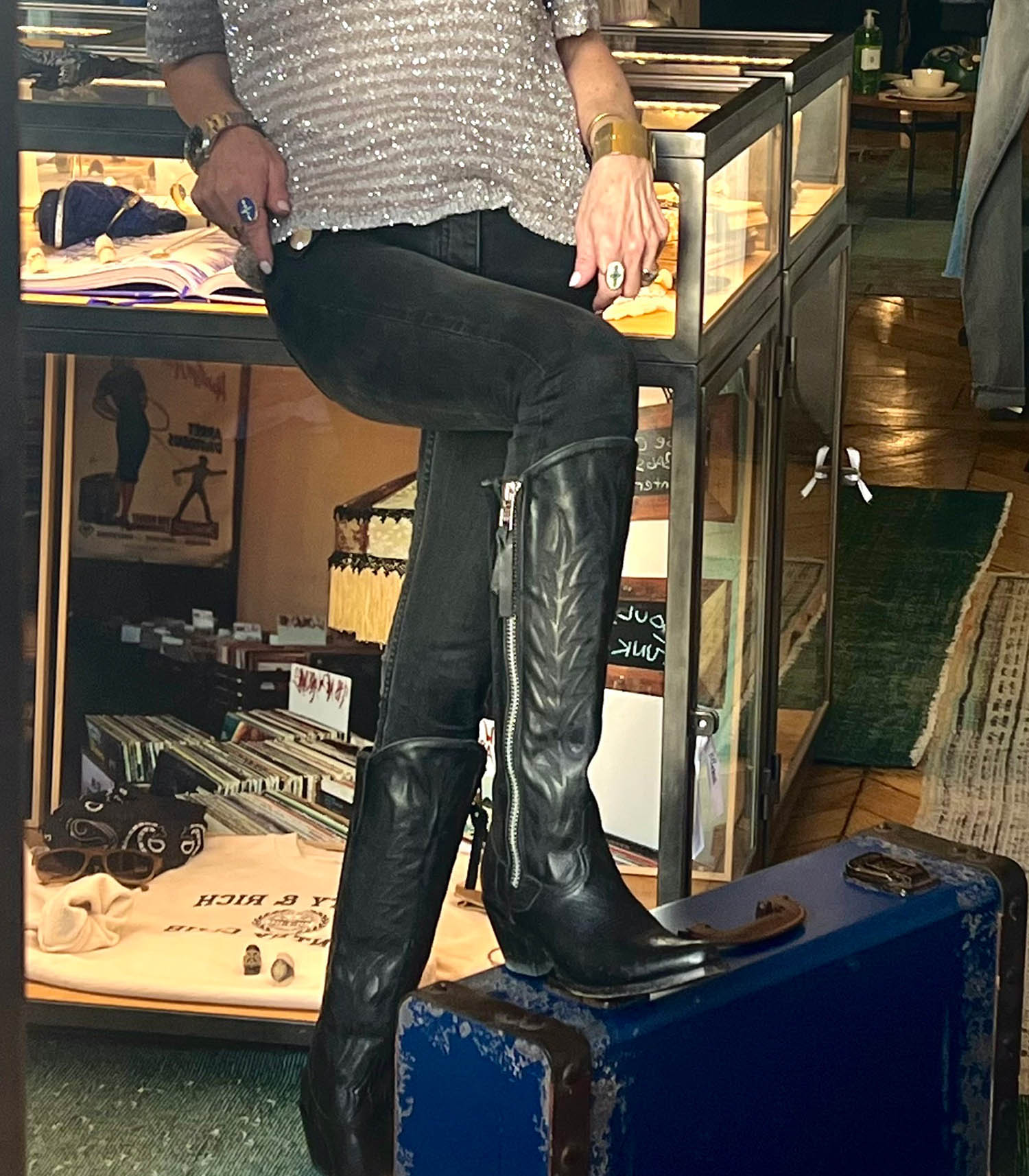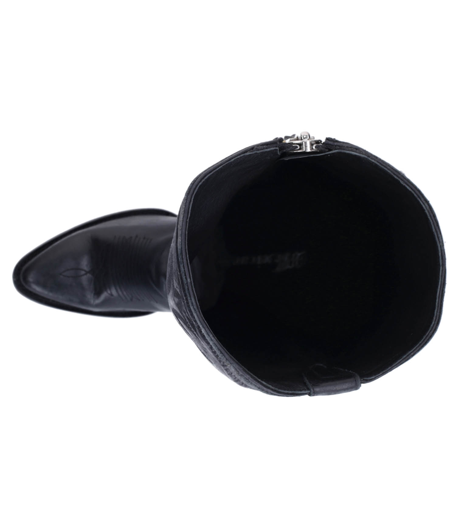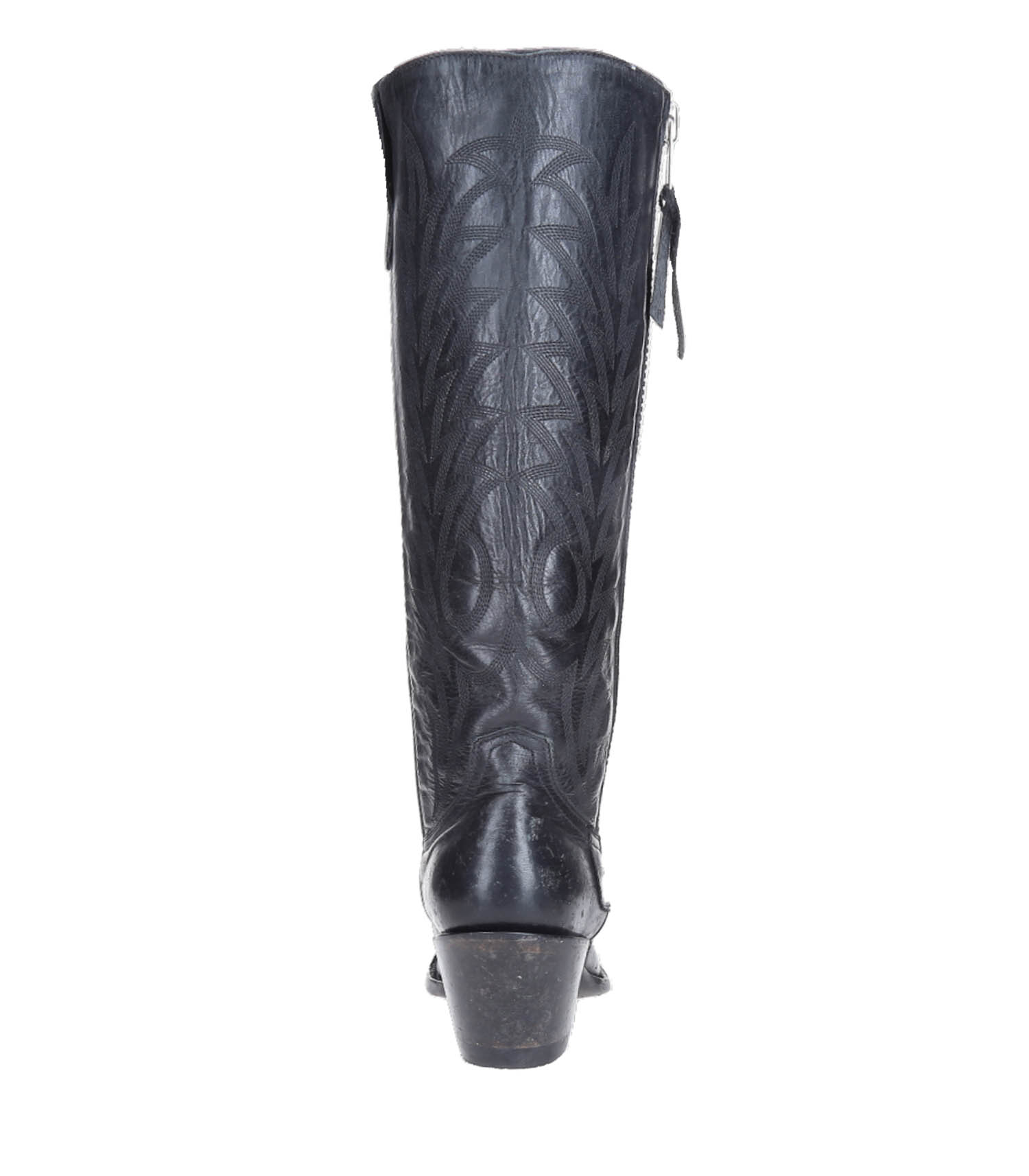 Icône intemporelle du vestiaire western, ces bottes santiags hautes noires signent l'ADN authentique de la maison Mexicana. Confectionnées avec un savoir-faire d’exception, elles arborent des lignes affûtées et des détails travaillés qui subliment leur caractère audacieux. Entre allure rock et esprit bohème, elles insufflent une attitude affirmée à chaque silhouette. Un classique à porter sans modération, du jean brut à la robe fluide.