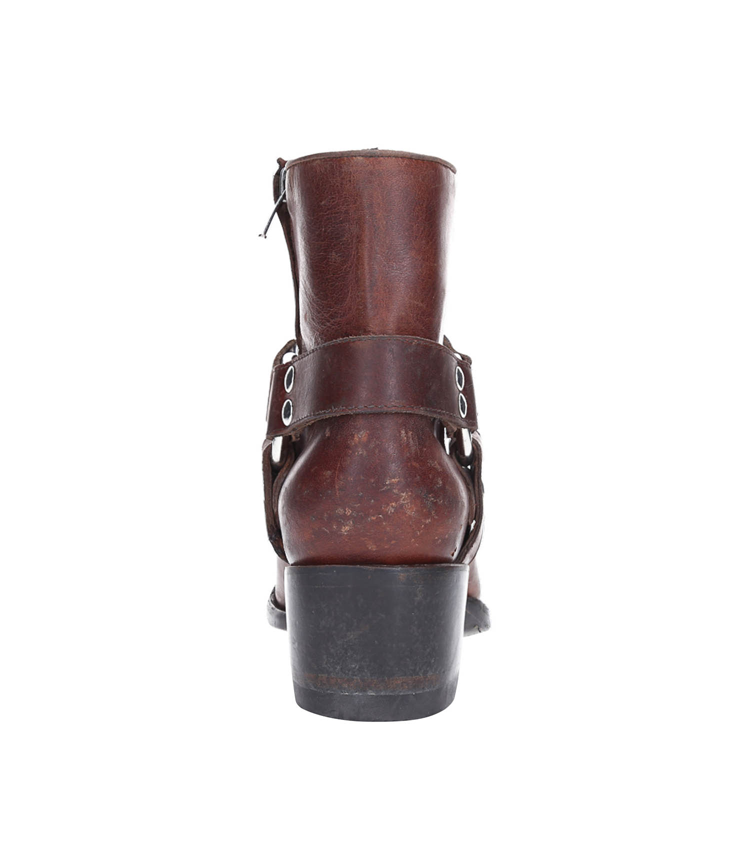 Boots Santana Saddle Cognac signées Mexicana x Jane de Boy. Les parfaites petites ankle boots santiag pour le quotidien, avec leur tige en cuir brun à l'aspect brut.