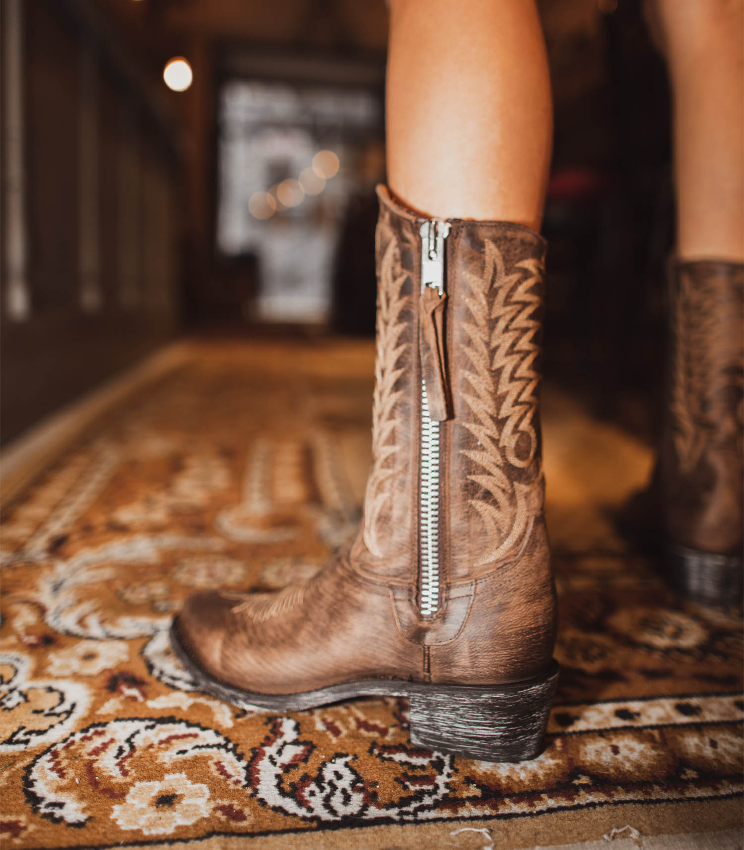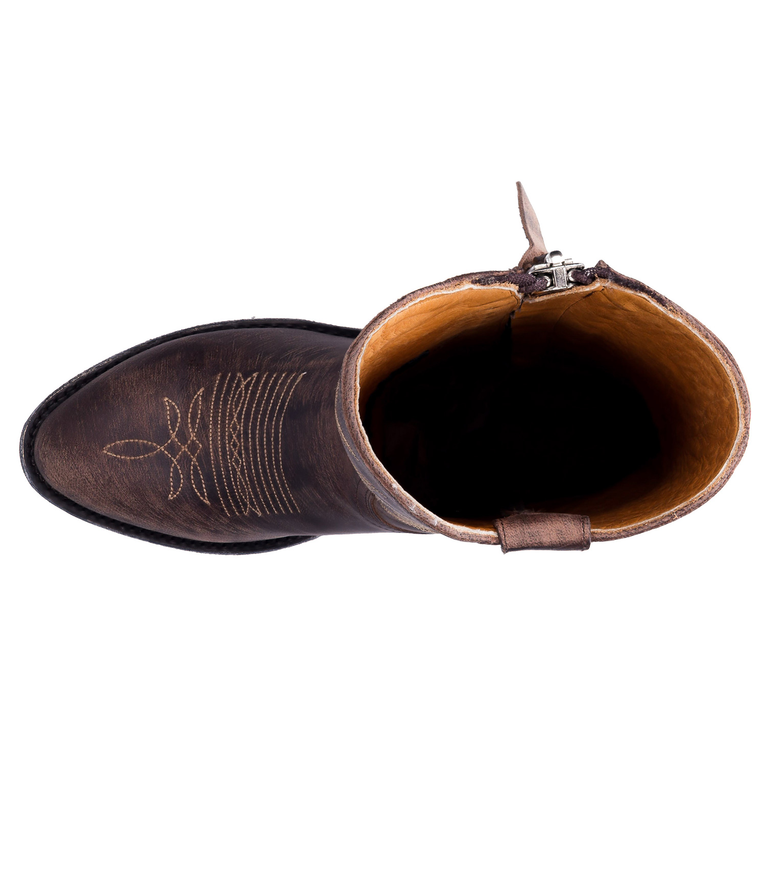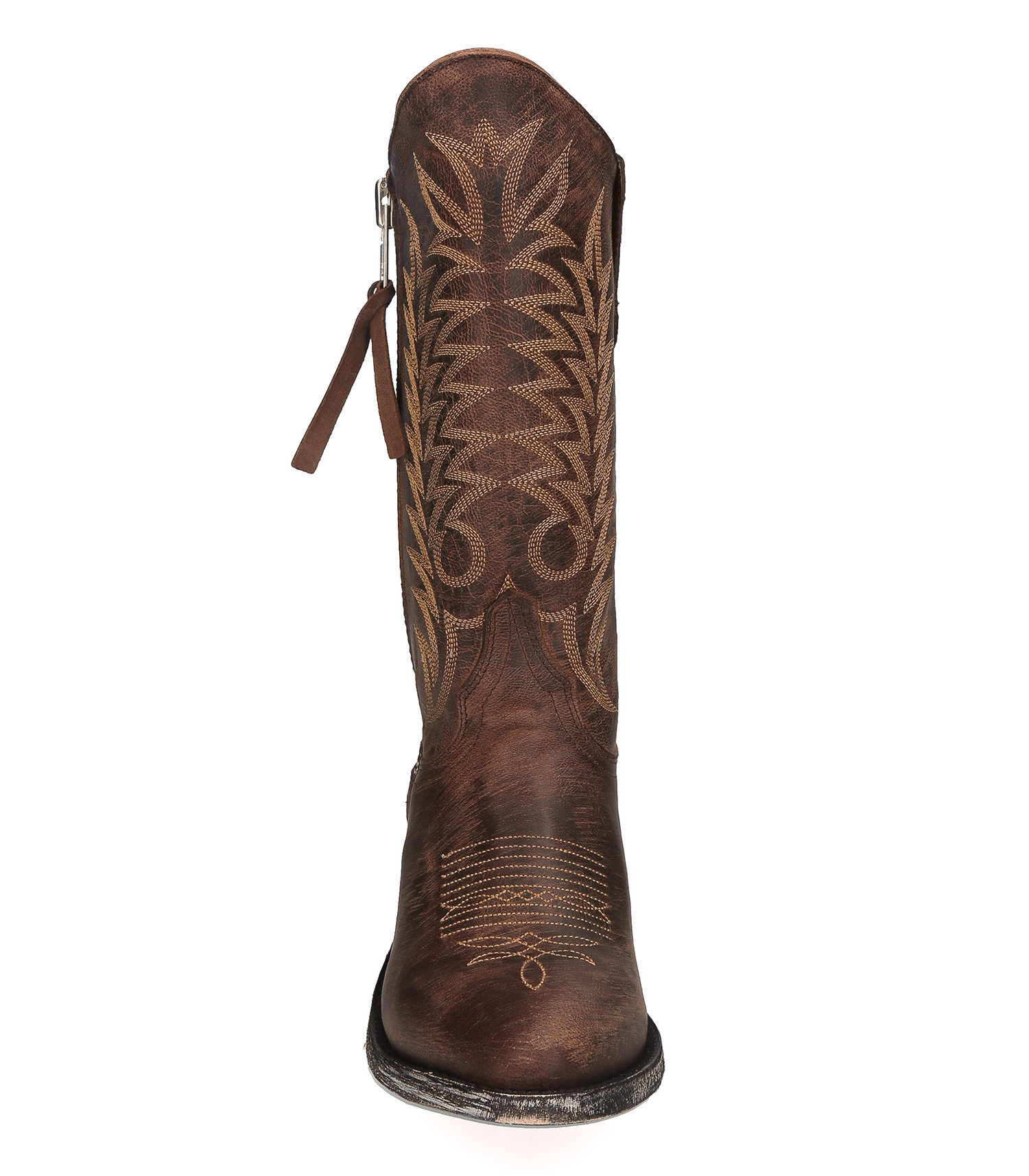Boots santiag Mexicana, modèle Razz 10 en coloris marron "Perro Loco" : la santiag à l'allure ultra-authentique qui fleure bon le vécu, dans une teinte marron à effet usé, ornée de broderies décoratives contrastantes. Réalisée en exclusivité pour Jane de Boy, cette paire de boots présente un élément qui la démarque : une fermeture zippée à l'extérieur de la jambe.