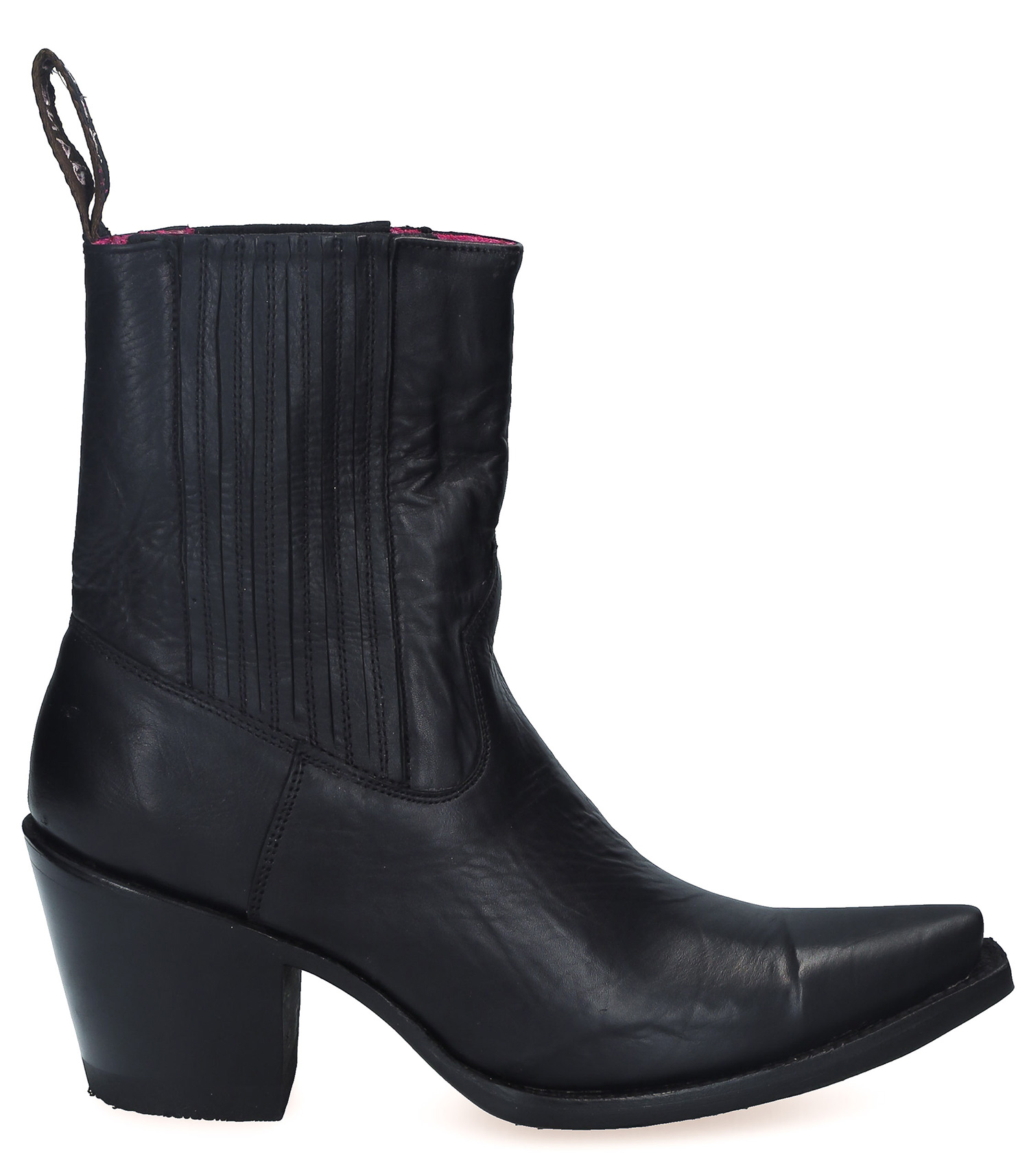 Parce que nous choisissons toujours nos collaborations avec soin, découvrez nos toutes dernières Boots Studio Plain Black signées Mexicana x Jane de Boy. Des bottines à talons en cuir noir dont la tige remonte assez haut sur le du mollet, avec un large élastique pour plus de confort. Le talon est légèrement biseauté, signature des boots Mexicana. Petit singularité : la doublure présente un joli coloris lie de vin sur le haut et la languette arrière est brodée du logo "JANE DE BOY".