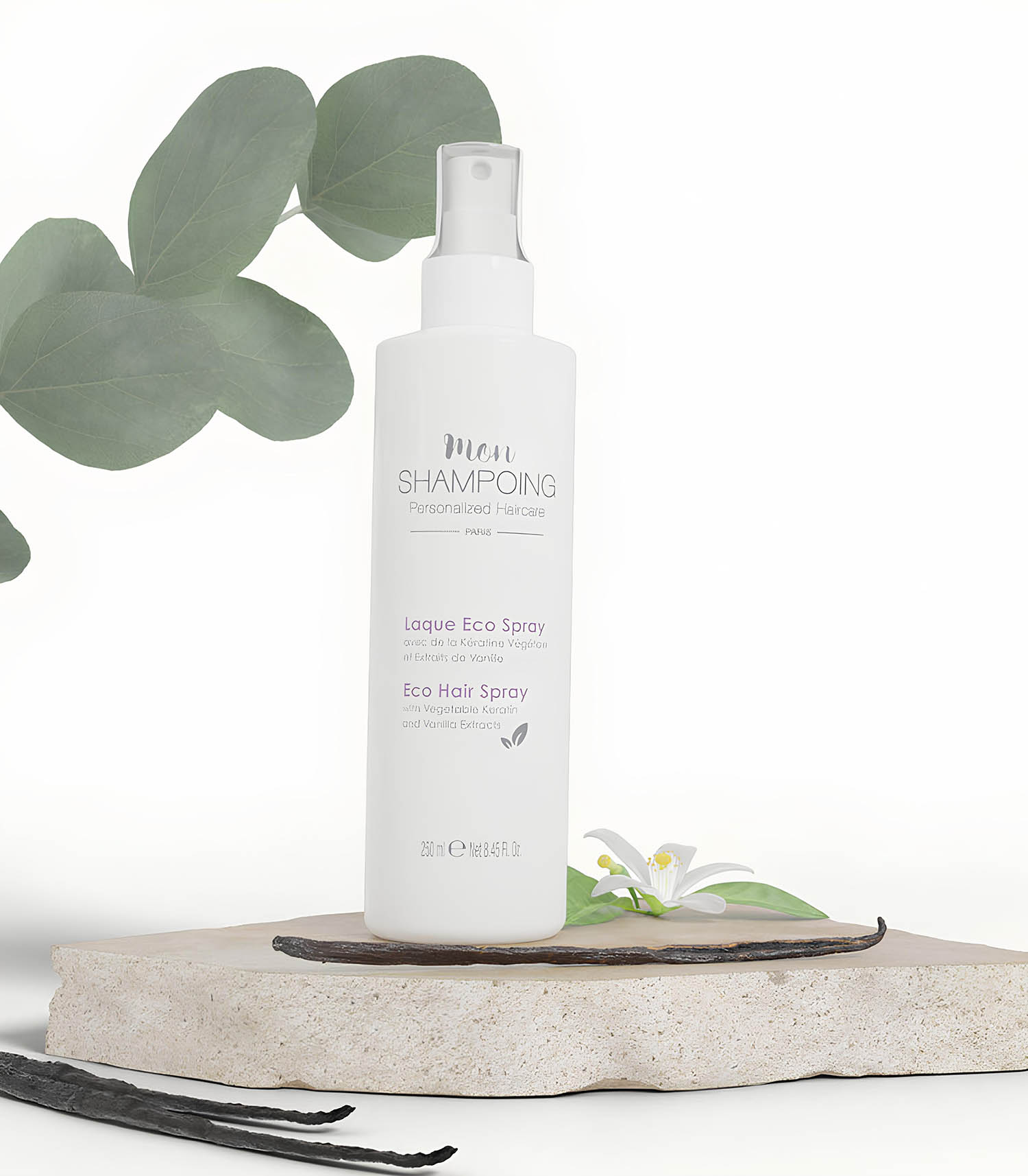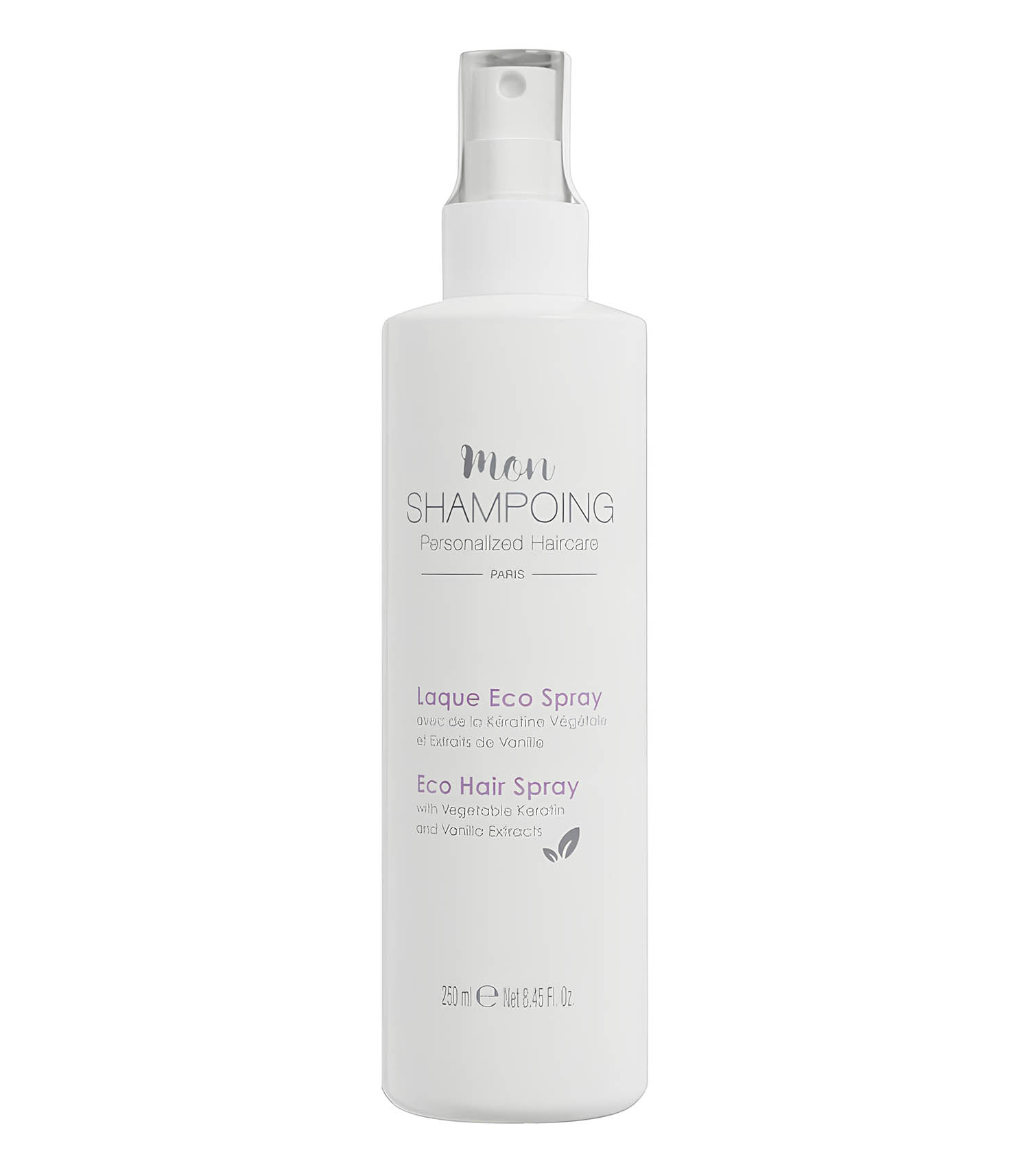 Laque Eco Spray Mon Shampoing. Découvrez la Laque Éco Spray, une solution innovante et respectueuse de l’environnement pour une fixation durable sans compromis. Sans gaz ni alcool, elle offre une fixation moyenne à forte tout en maintenant la souplesse et le volume de vos cheveux. Sa formule révolutionnaire, enrichie en ingrédients naturels et en Kératine végétale, hydrate et protège la structure capillaire, tout en apportant une brillance naturelle.