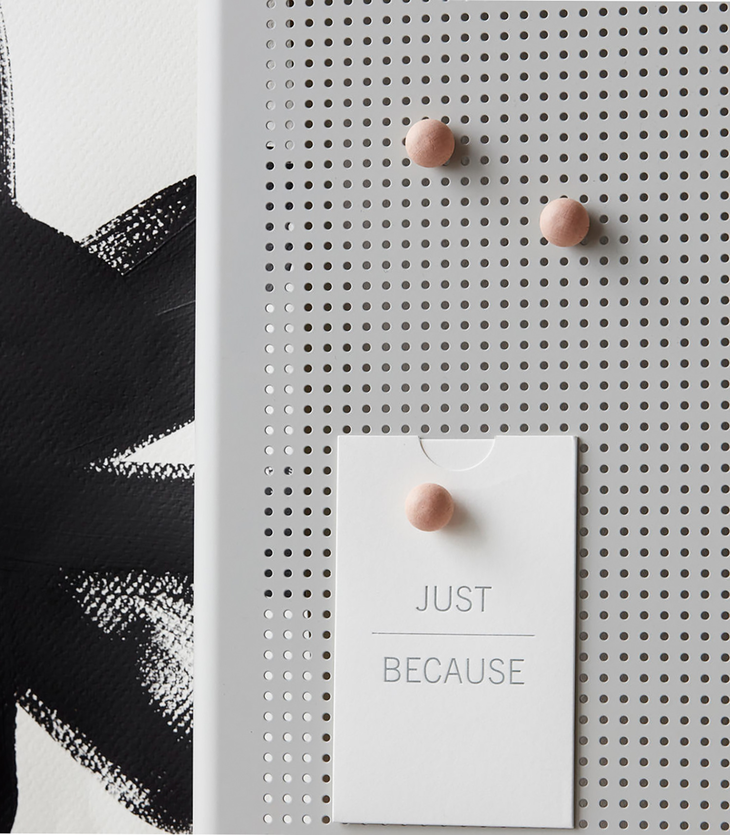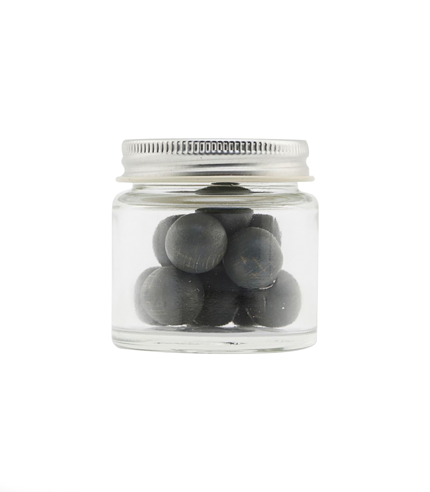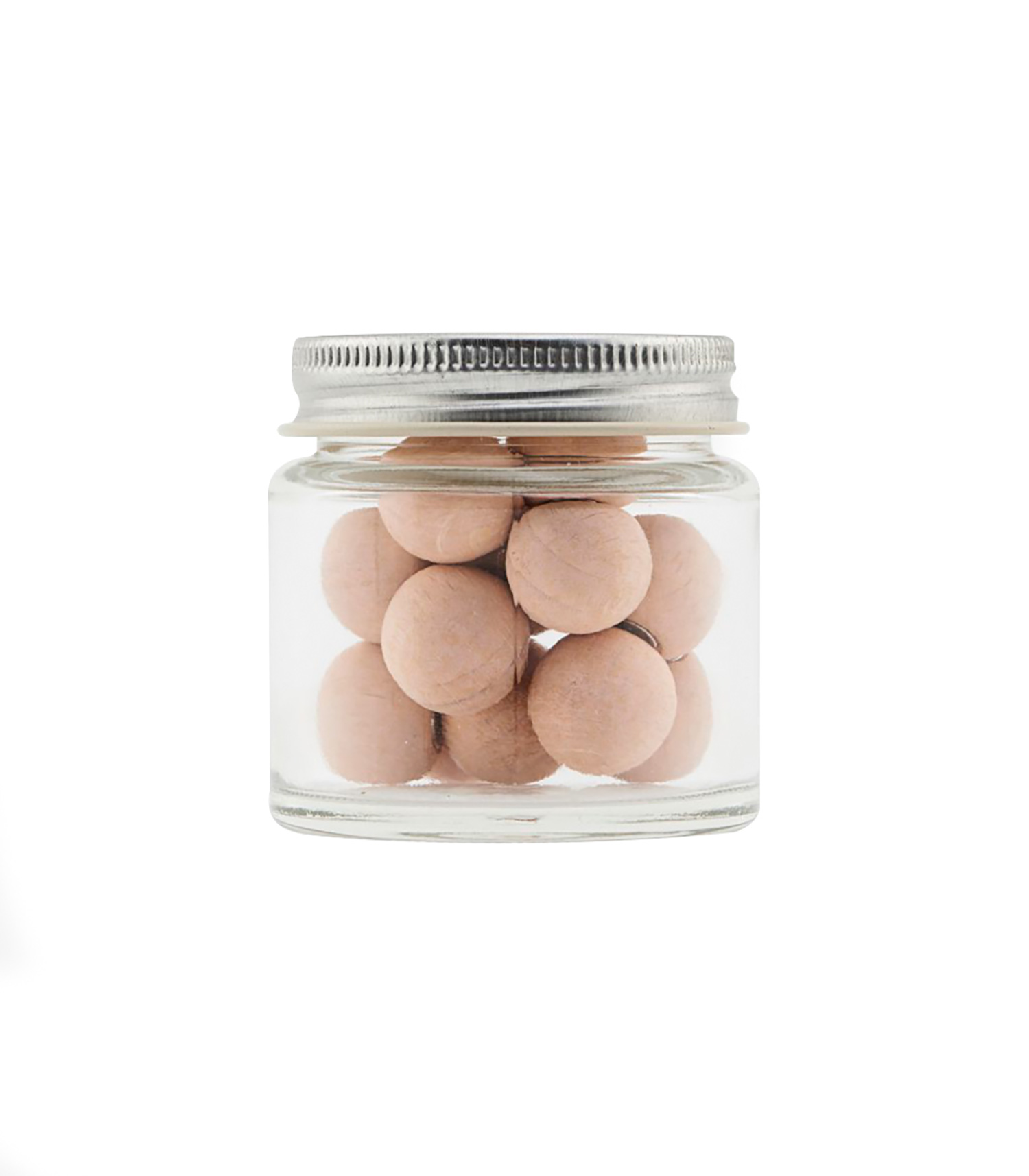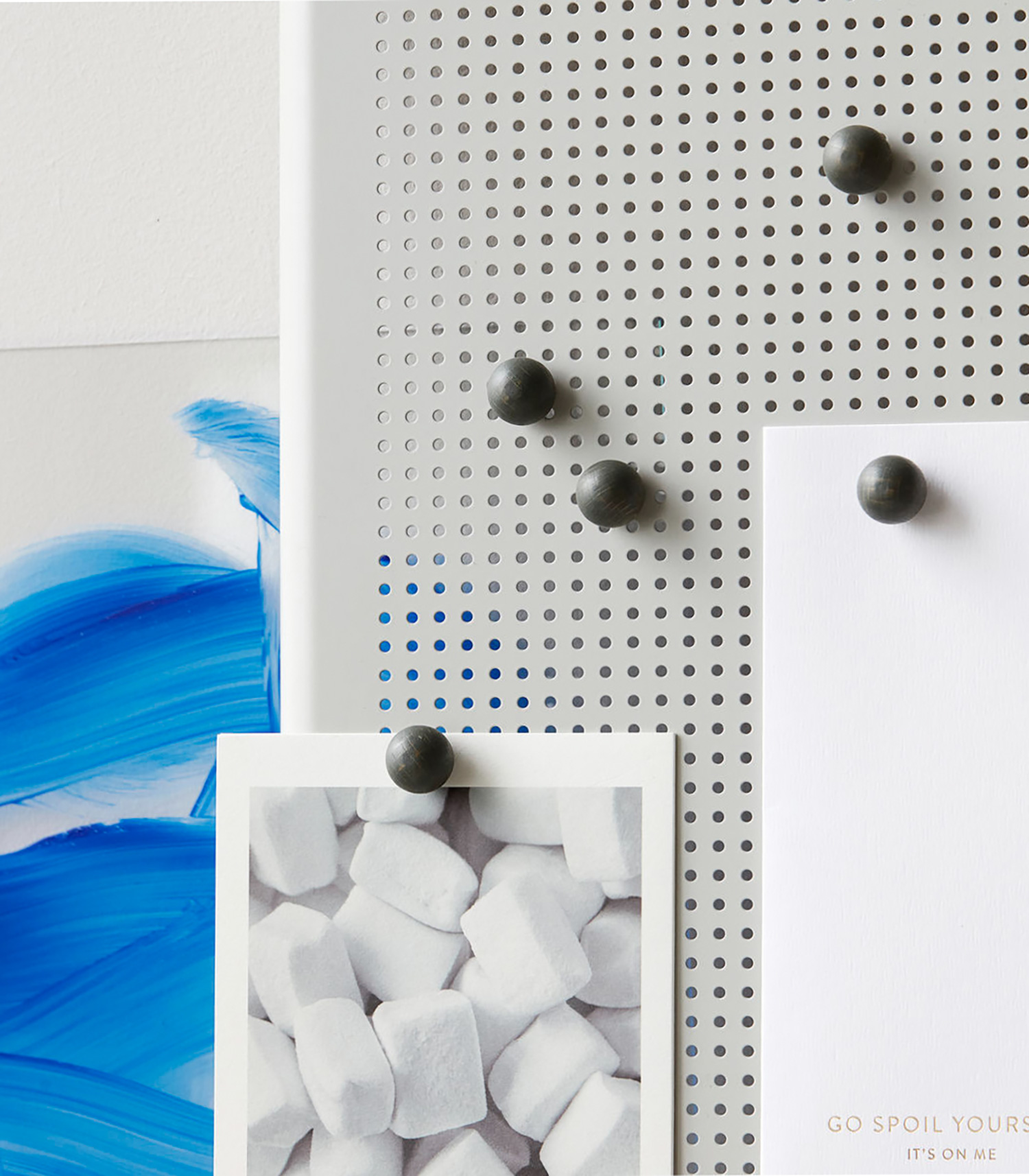 Magnets Monograph en bois : 12 sphères de bois possédant une surface aimantée pour accrocher simplement vos pense-bêtes, notes et photos sur une surface métallique. Sobre et design pour votre porte de frigo ou votre planche d'inspiration au bureau !