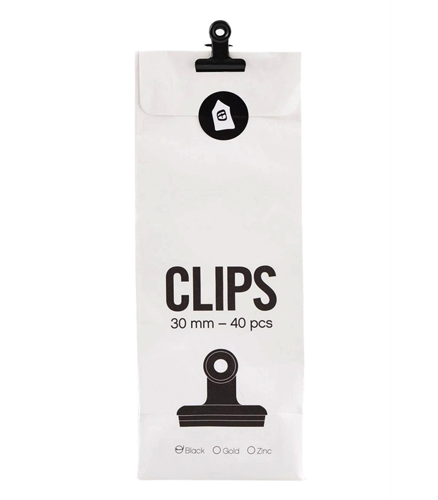 Spécialiste du design à la scandinave et des accessoires de bureau et de papeterie, Monograph propose ce sachet de 40 clips noirs. Faciles à utiliser, ces clips de 30 mm à l'esprit industriel accompagneront aussi bien vos projets bricolage que décoration.