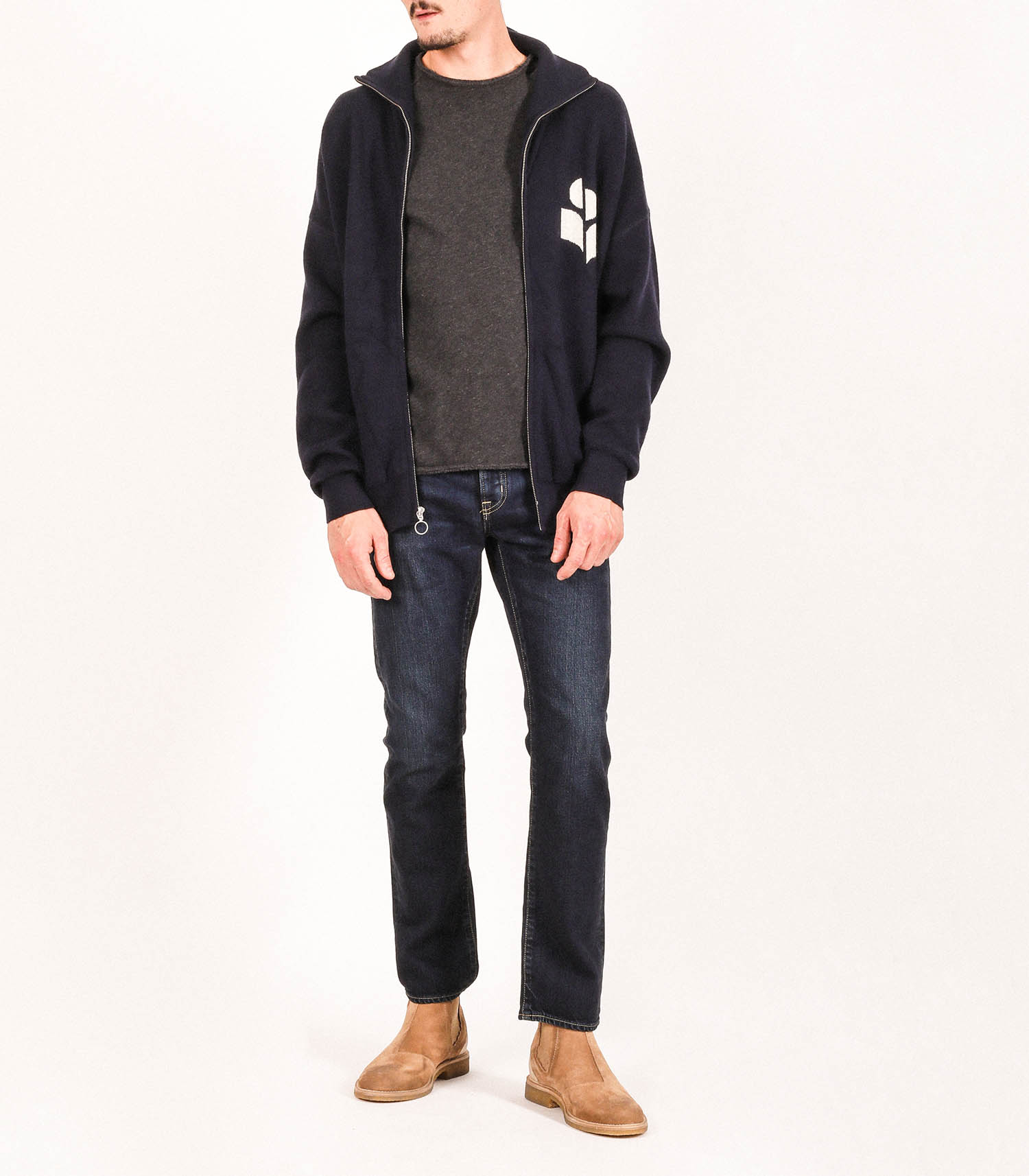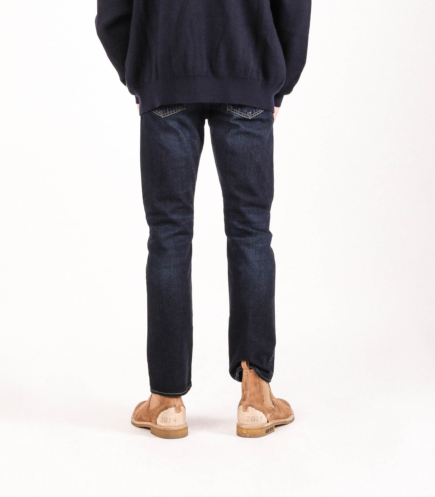 Jean pour homme Greenfield Dress Straight signé Moussy Vintage, un jean coupe loose et droite au délavage sombre Dark Blue. Modèle cinq poches aux coutures contrastantes. Résolument un essentiel du vestiaire masculin.