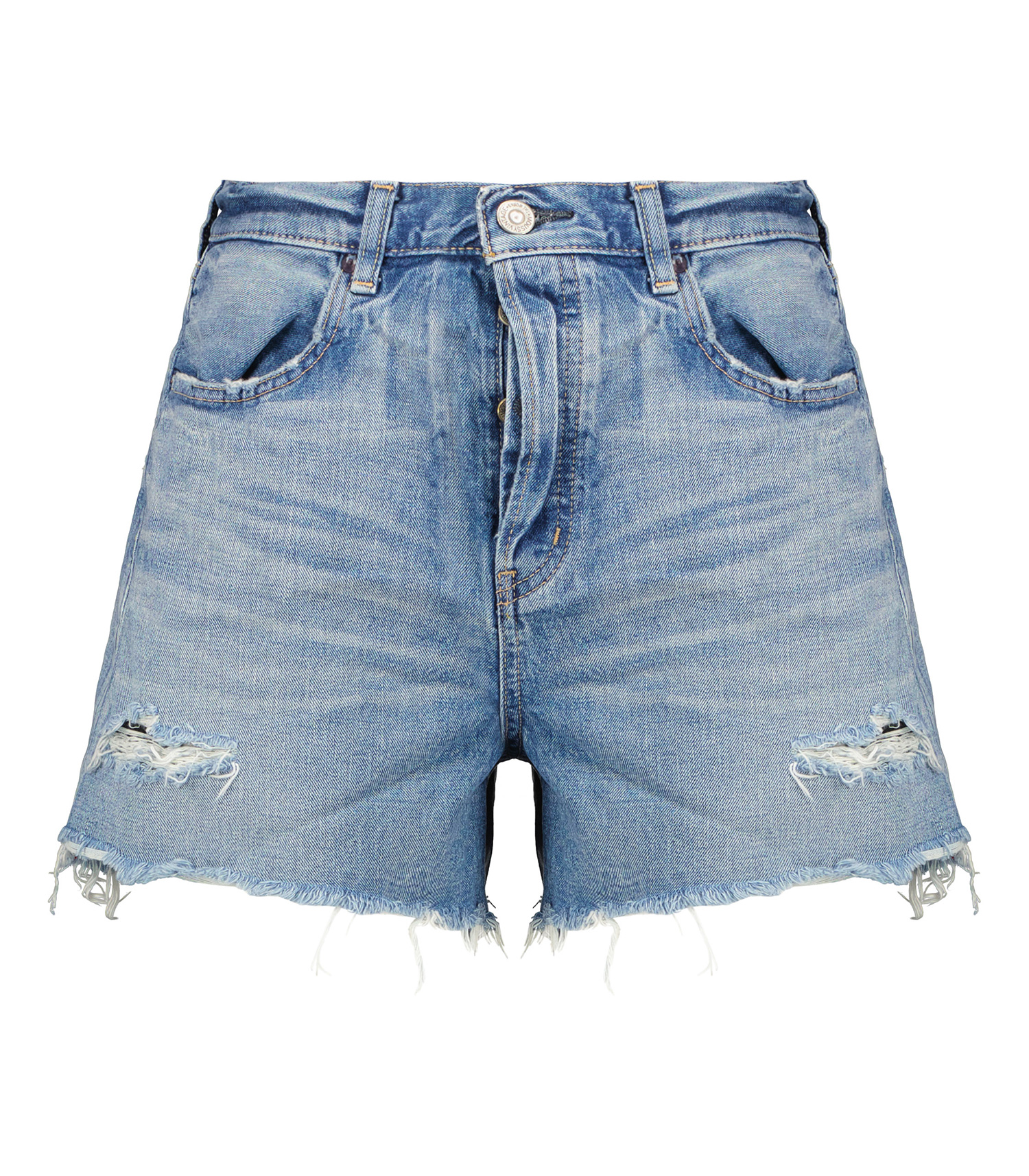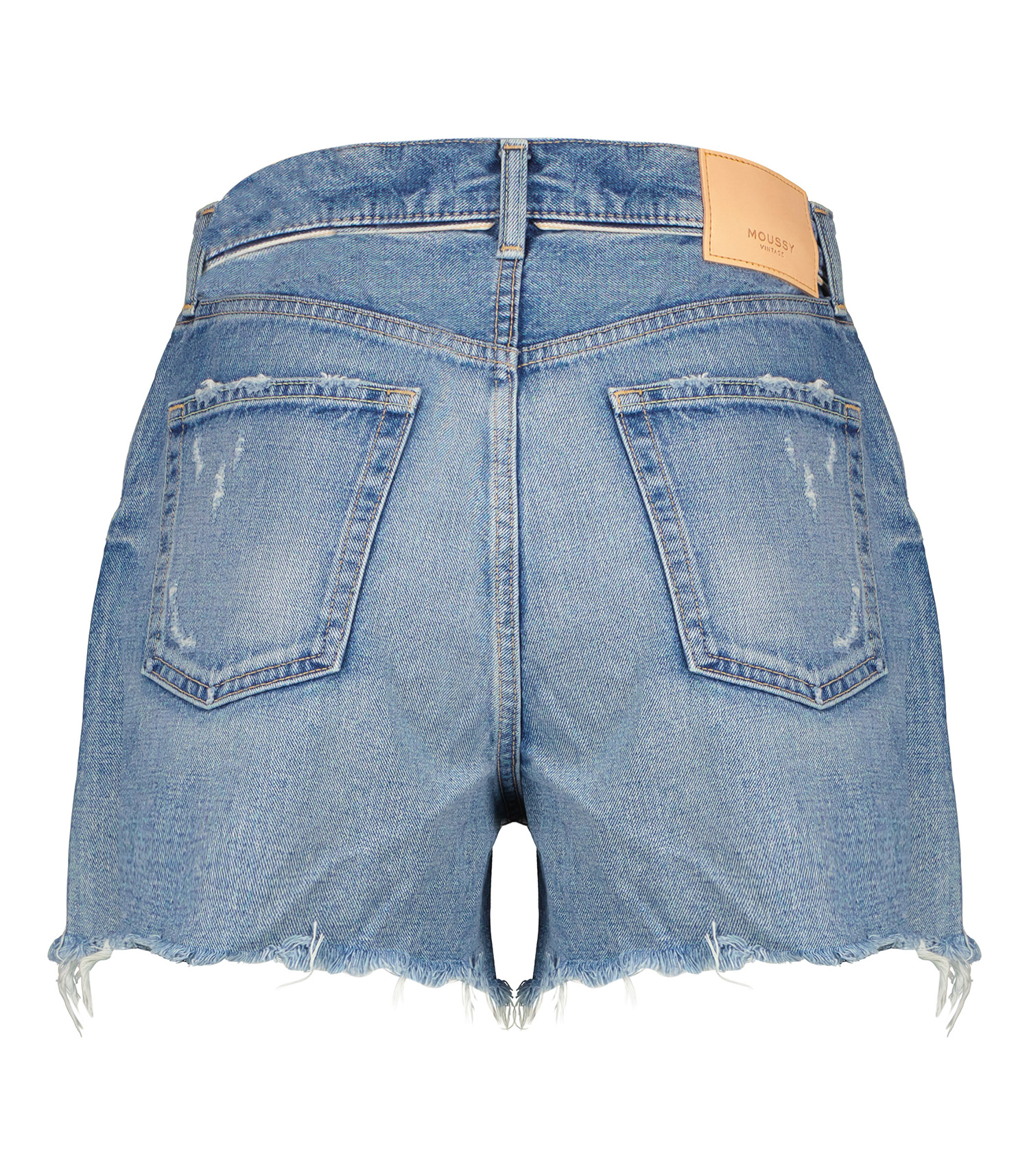 Coup de coeur pour le short en denim Pelion à taille haute Moussy Vintage, la quintessence du short en jean à coupe rétro qui flatte la silhouette avec sa taille haute, destroy à souhait avec son délavage soutenu et ses bords effilochés.