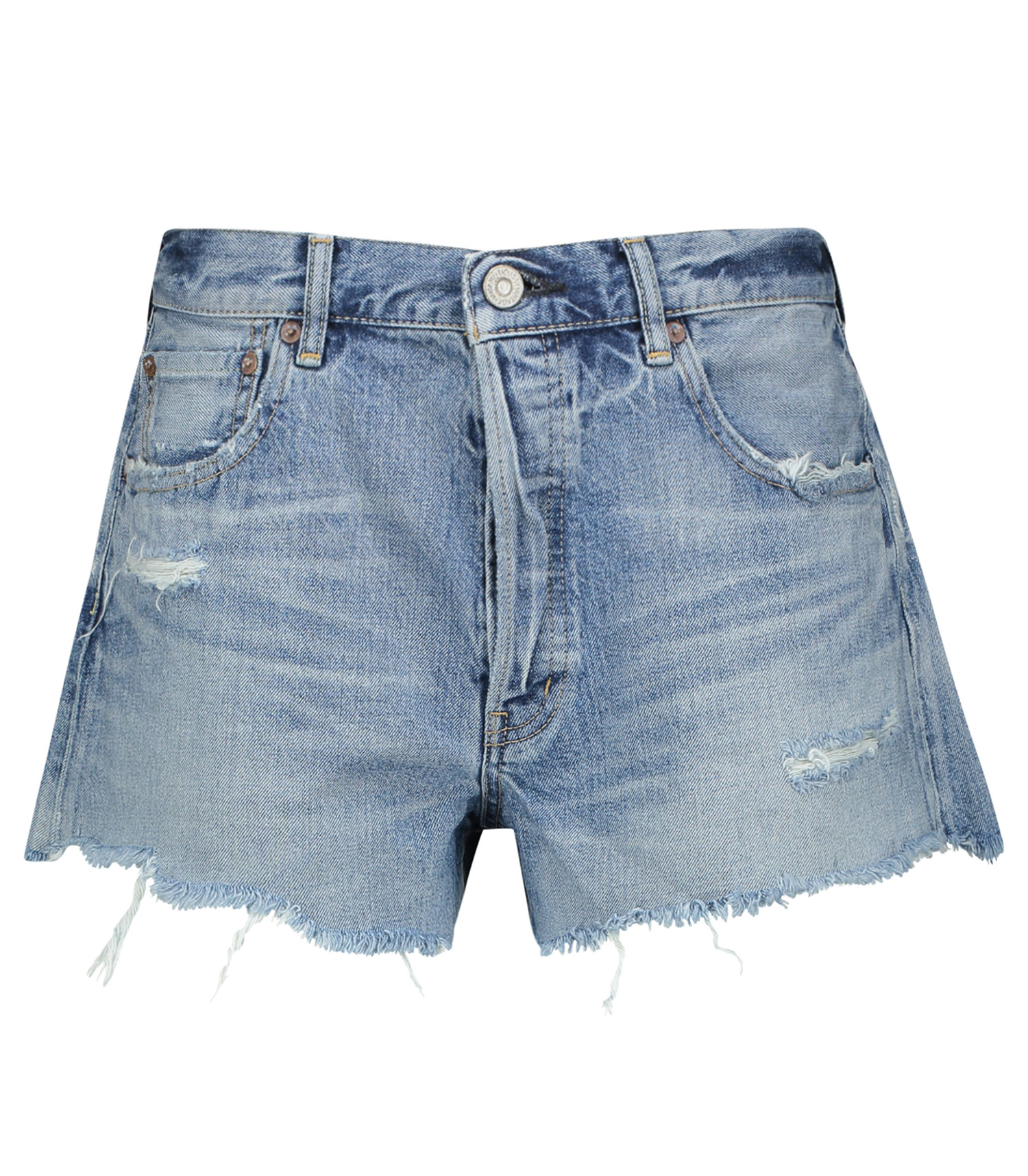 Short en jean Packard signé Moussy Vintage, une allure décontractée avec ses détails destroy et un coloris bleu médium qui se veut passe-partout.