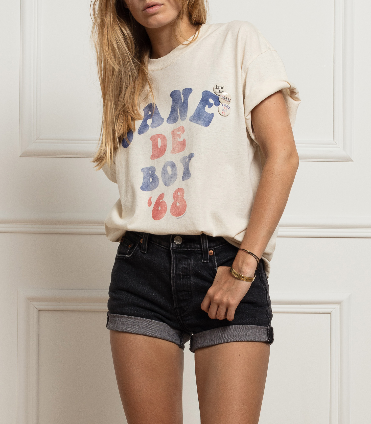 Un vent de nostalgie souffle avec ce tee-shirt Jane de Boy '68 de Newtone. Son style vintage et ses finitions délavées reprennent la célèbre typographie des années 70 avec une l’inscription "Jane de Boy '68" sur la poitrine. Modèle trucker iconique de Newtone, à la coupe droite masculine et ample.