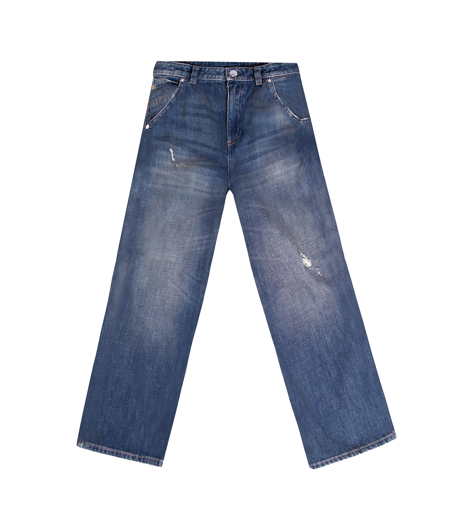 Ce jean révèle des détails subtils qui s'arrêtent au niveau de la couture latérale, offrant un aperçu délicat sur le côté, mais qui se dévoilent davantage à l'arrière.