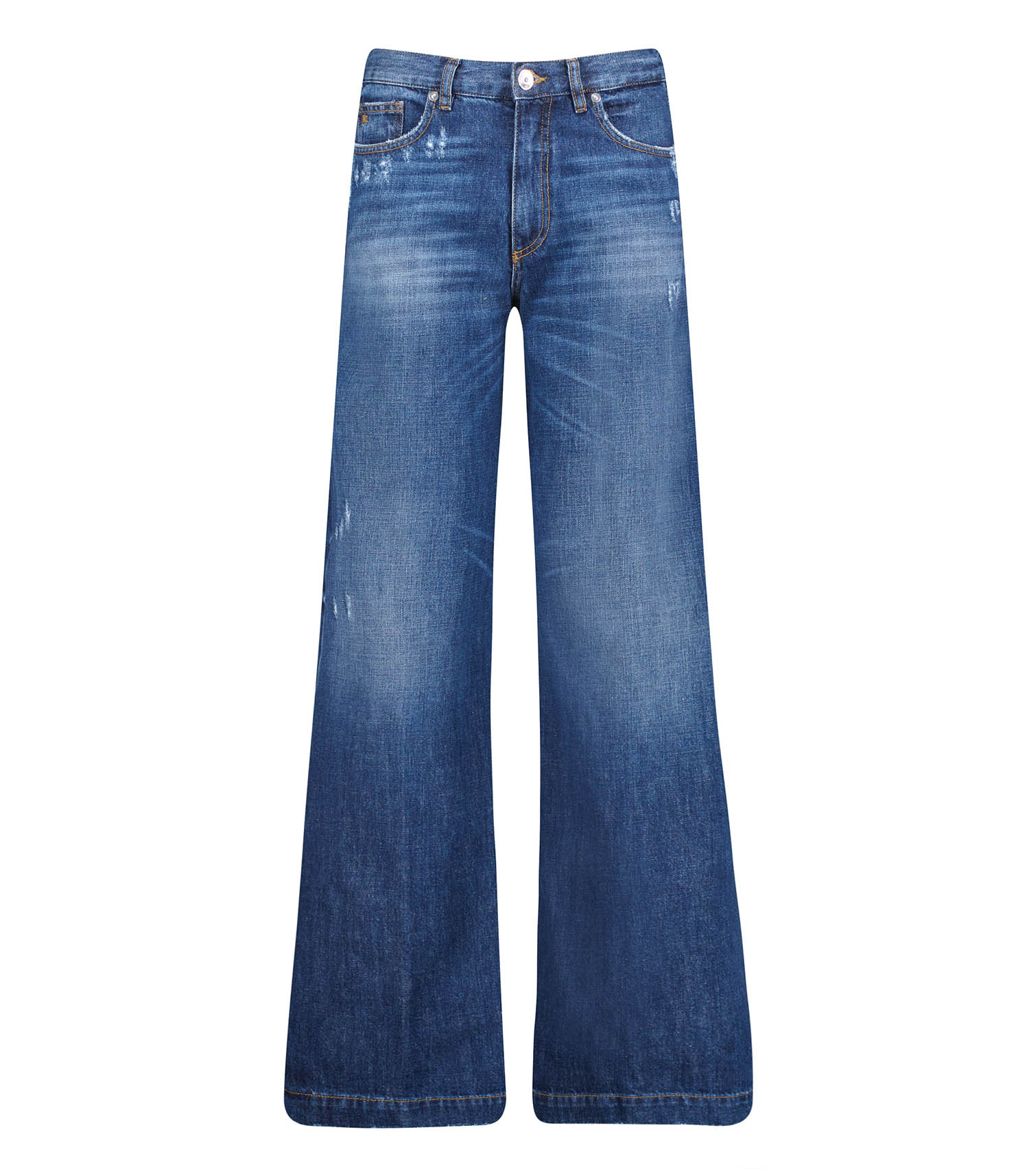 Jean Nadia Palazzo Over Destroy Bleu de la marque Nine in the Morning. Un modèle large et taille haute que l'on associe à un débardeur et une paire de baskets. Fabriqué en Italie.