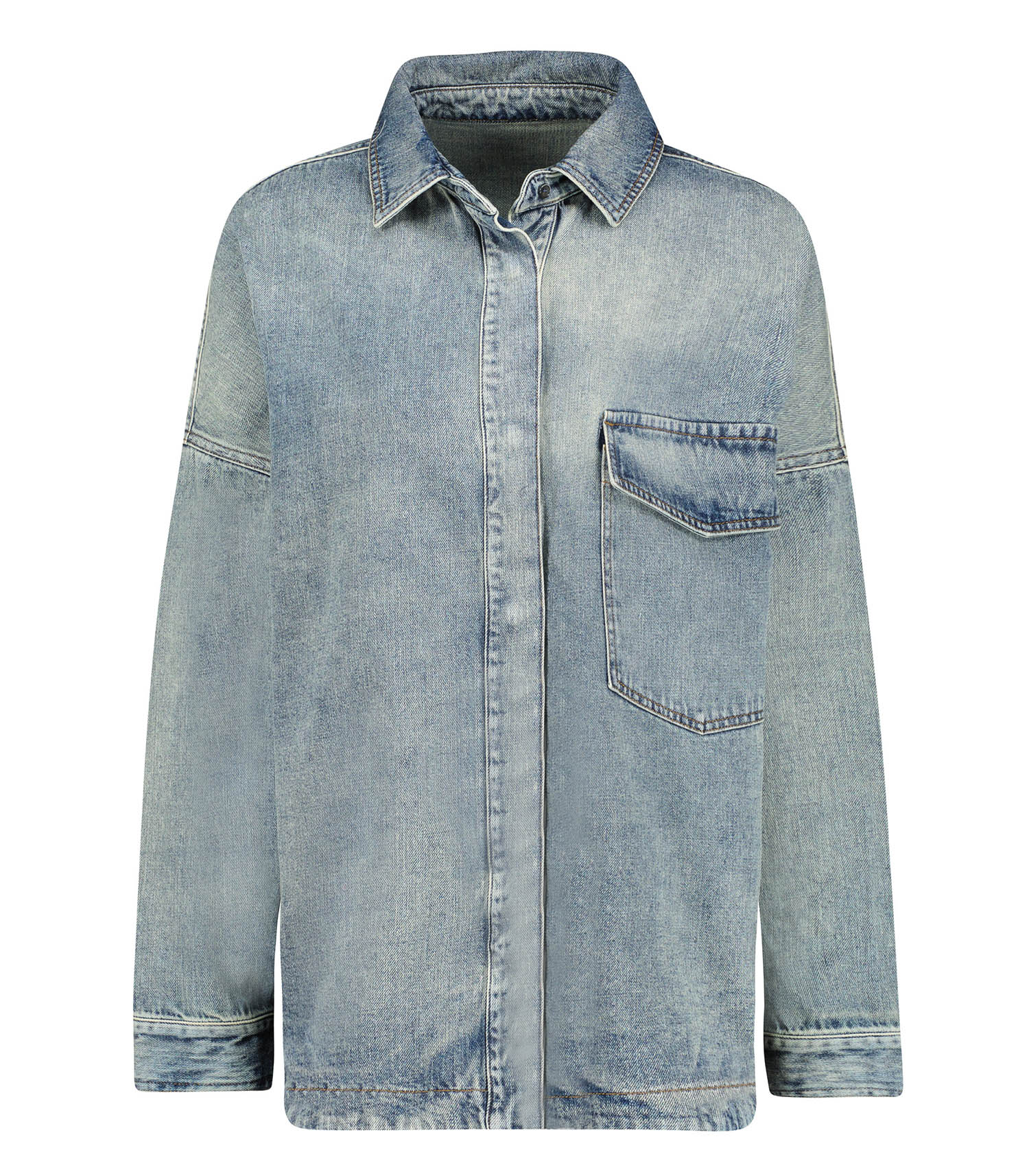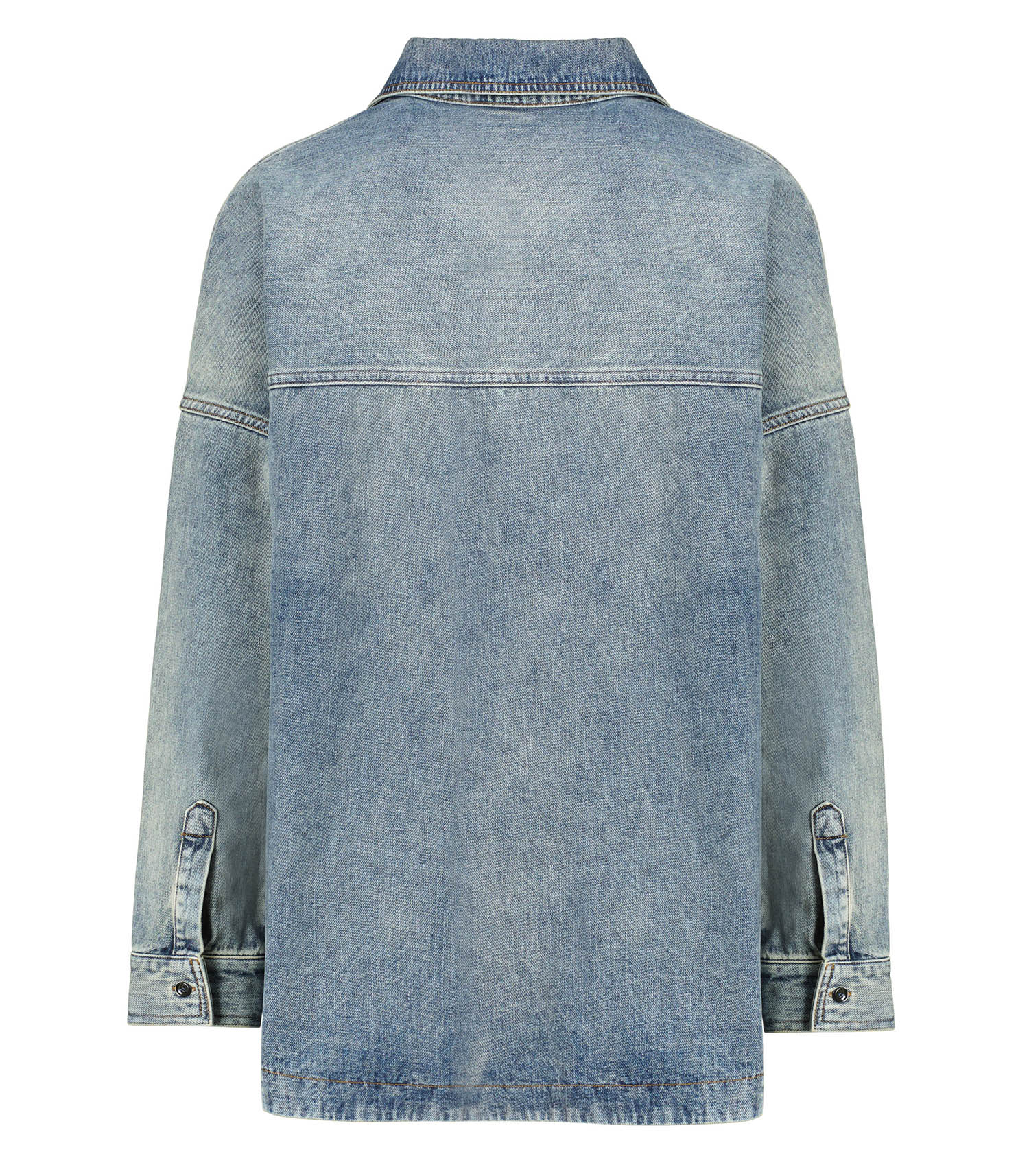 Craquez pour le chemisier en denim authentique, coupe oversize, qui allie confort et style. Confectionné en denim de qualité, il se distingue par sa poche plaquée sur le devant et sa fermeture boutonnée discrète, ajoutant une touche moderne et épurée.