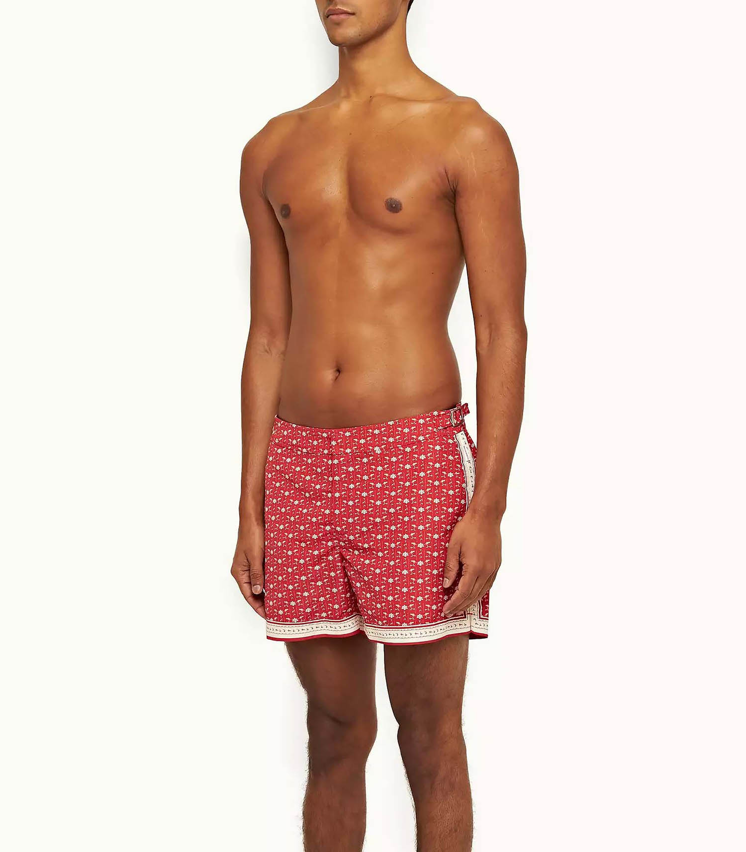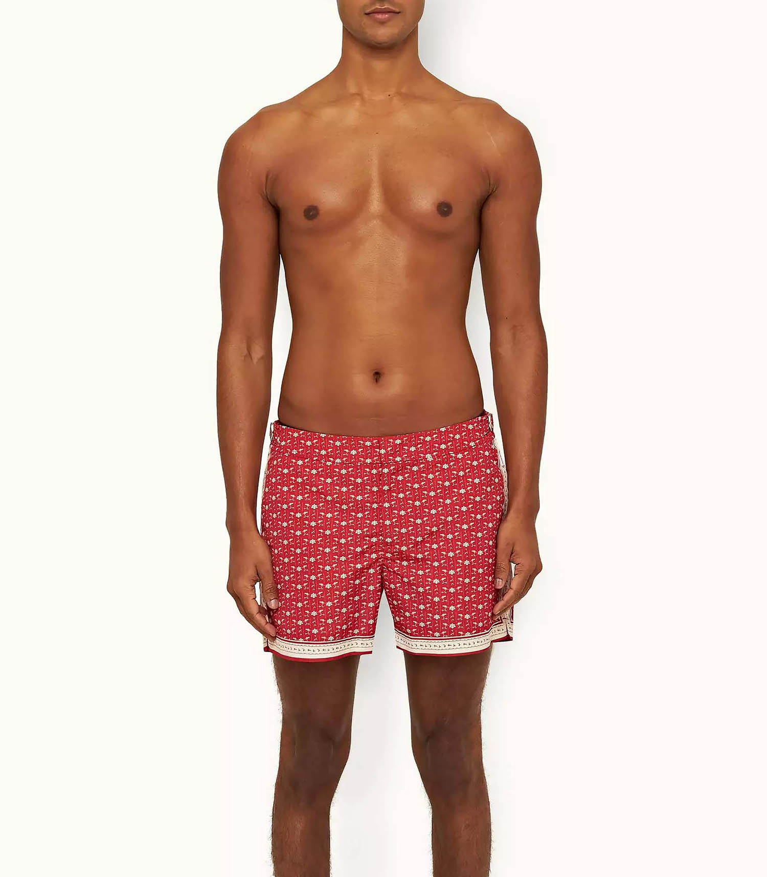Short de bain pour homme Setter Vermillion Sea Mist Bandana de la marque Orlebar Brown. Conçu d'après le patron d'un pantalon de costume, ce modèle permet de créer des tenues de plage à la fois élégantes et rétro.
