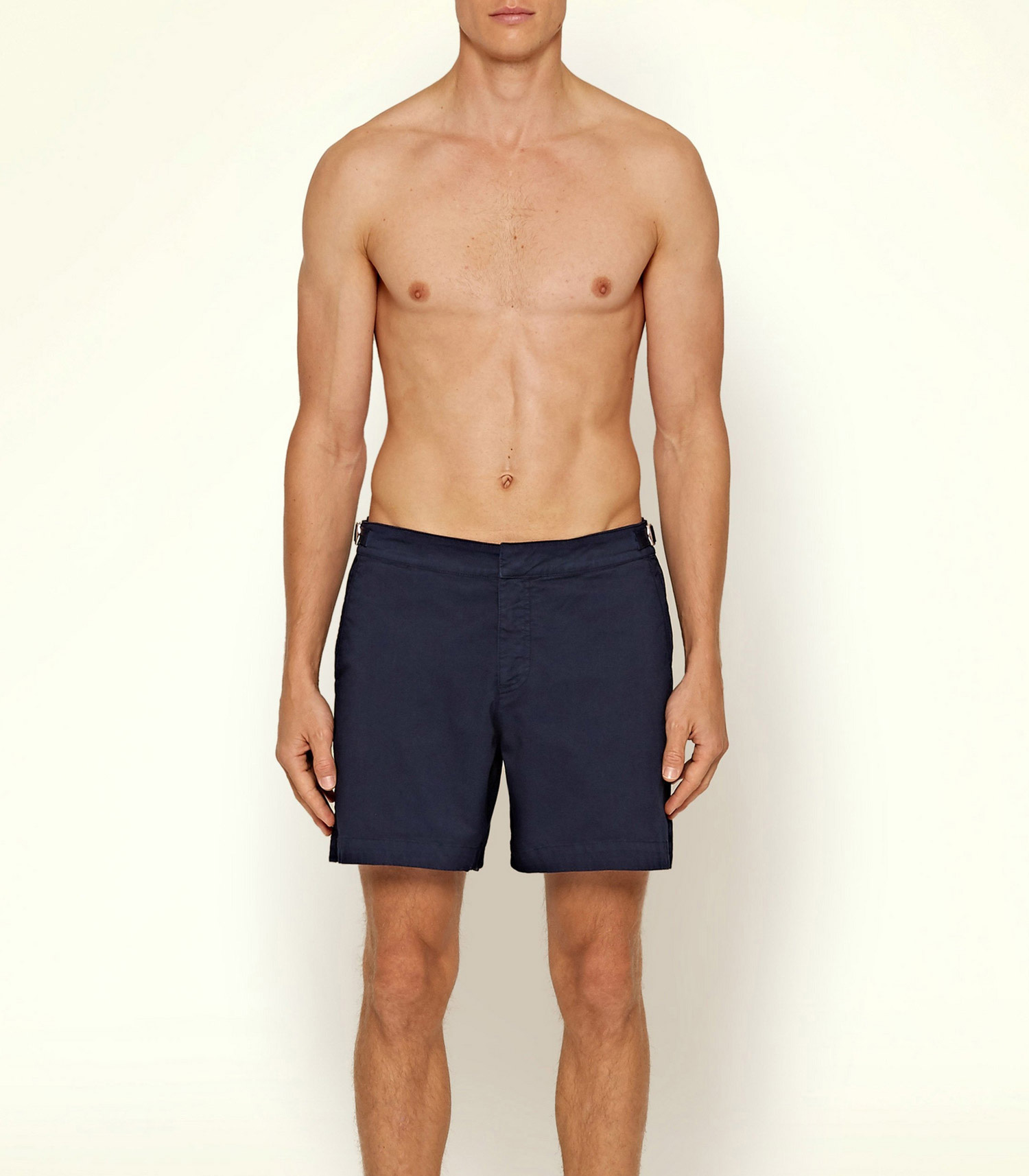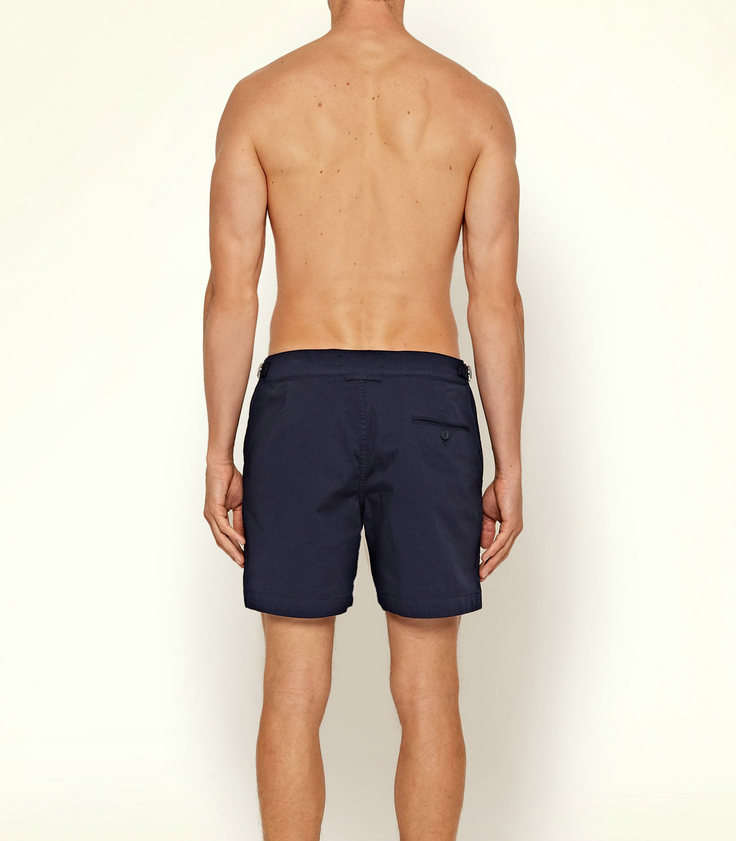 Short Mi-Long Bulldog Cotton Twill Orlebar Brown, coloris Navy : la déclinaison en coton de l'emblématique maillot de bain Bulldog Orlebar Brown, dans une couleur bleu navy intense.