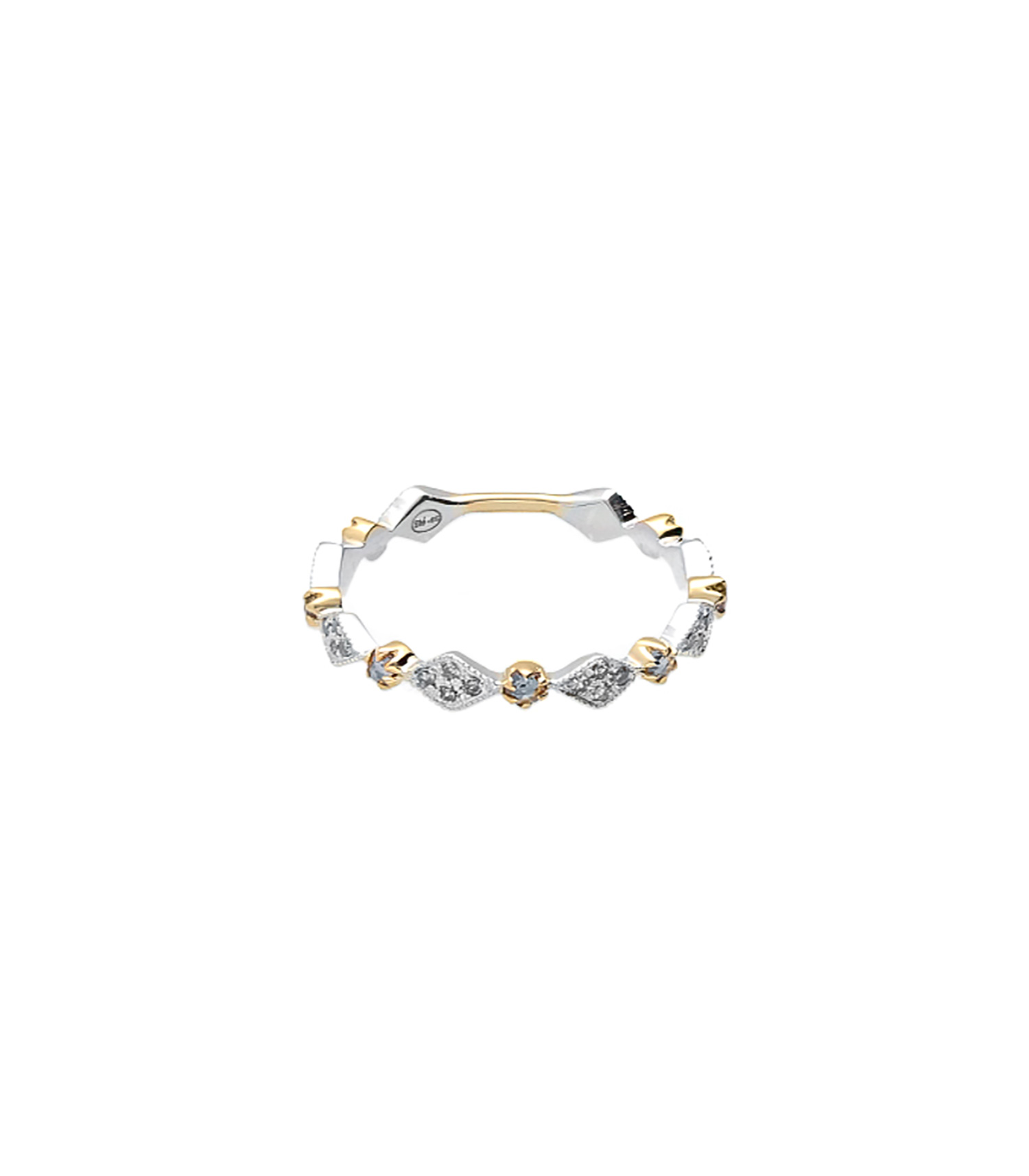 Pascale Monvoisin dévoile une délicate composition mêlant or jaune, argent et diamants avec sa Bague Ava n°1 Diamant. Ce modèle alterne détails en or et détails en argent, tous ornées de petits diamants pour apporter à la main une touche de lumière.