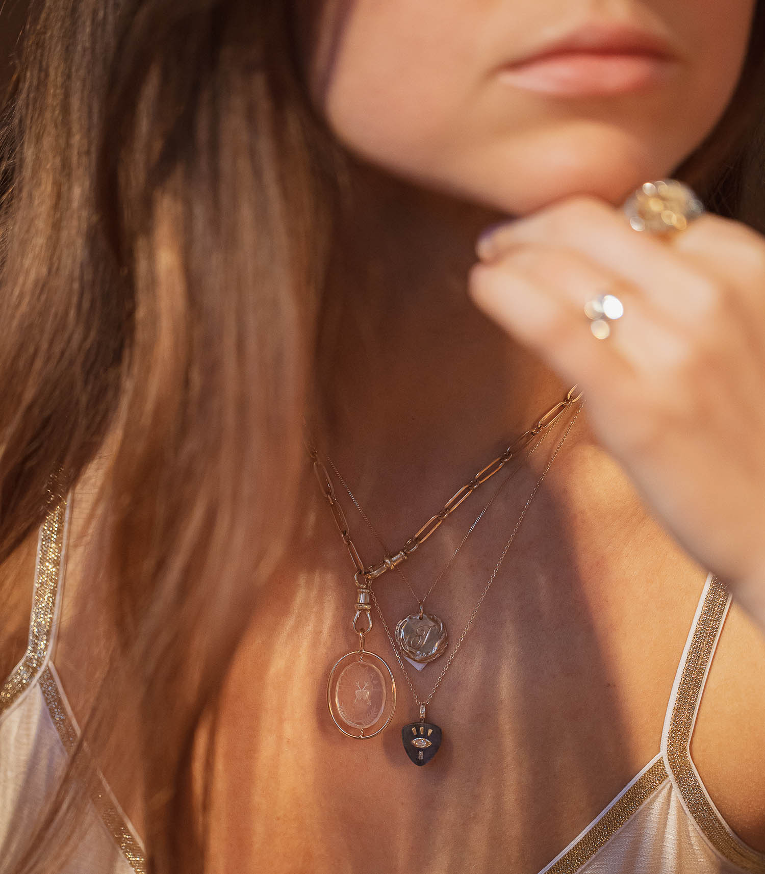 Le collier L’amour Chrystal n° 2 est un porte-bonheur raffiné à garder sur soi au quotidien. Il féminise un tailleur pour le bureau et s’accorde parfaitement avec une robe bohème.