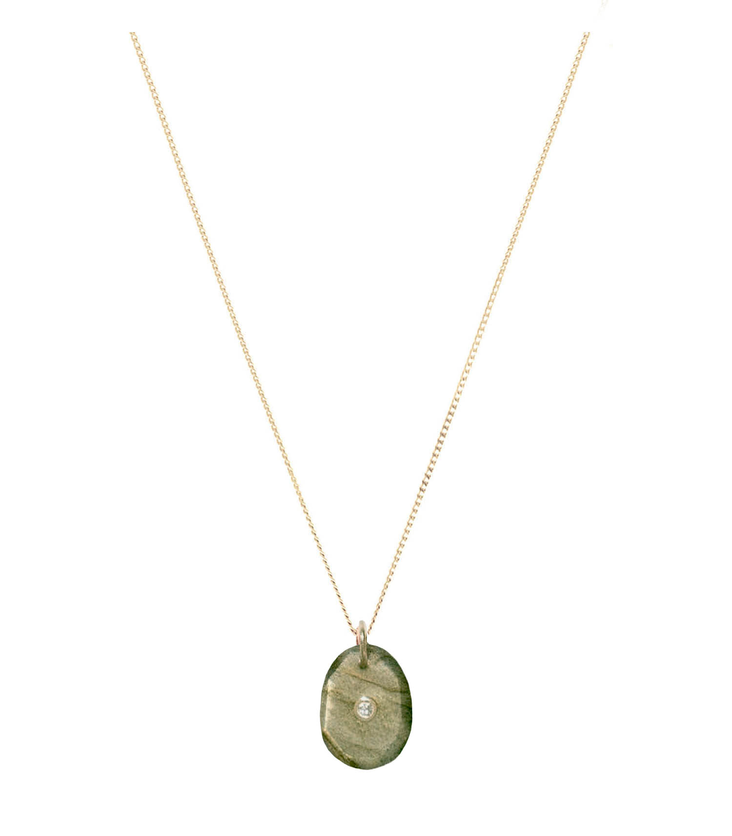 Création unique et artisanale de Pascale Monvoisin, le collier Orso N° 1 en labradorite est un bijou rare, conçu comme un talisman sacré. C’est en puisant dans ses voyages que la créatrice a imaginé ce collier en or jaune doté d’un pendentif en labradorite sertie d’or et diamant polki incrusté.