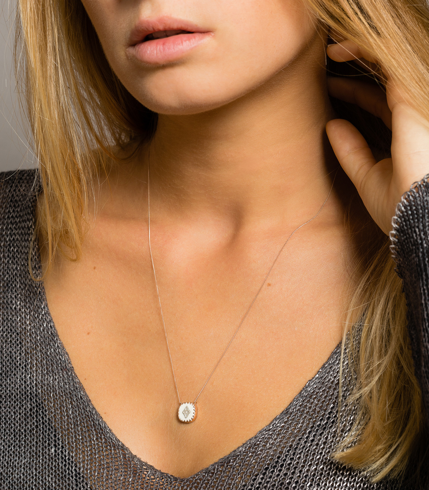 Délicat et poétique, le collier Pierrot N° 2 blanc et diamants Pascale Monvoisin confère une touche précieuse à l'allure. Associez-le à une matière noble comme la soie ou le cachemire.